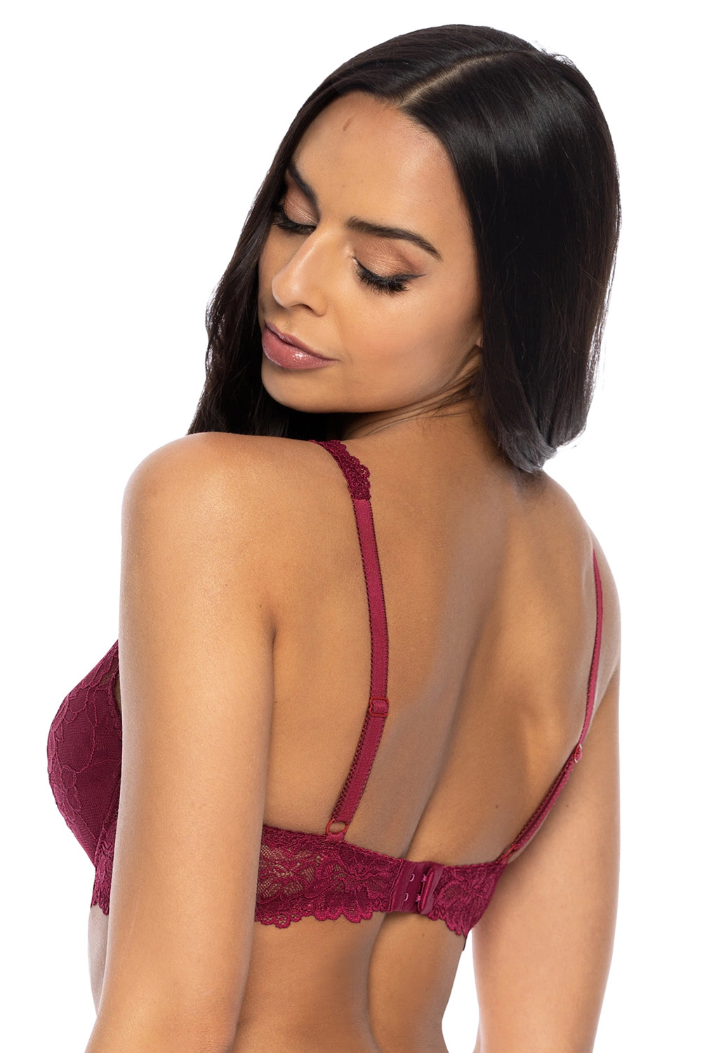 Mat Dame Bügel BH Gepolsterte Cups Spitze Blumenmuster Klassisch Komfortabel Elegant 053/22 Carmela, weinrot