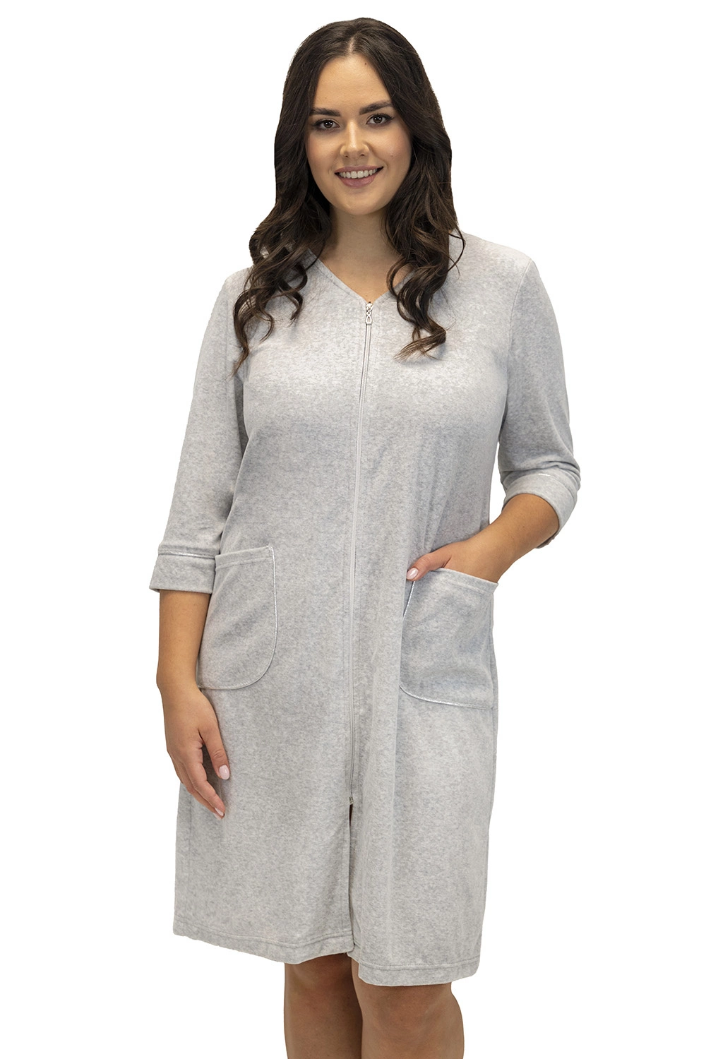Vivisence Morgenmantel mit Taschen Baumwolle Reißverschluss Bequem für zu Hause zu tragen 5027, grau