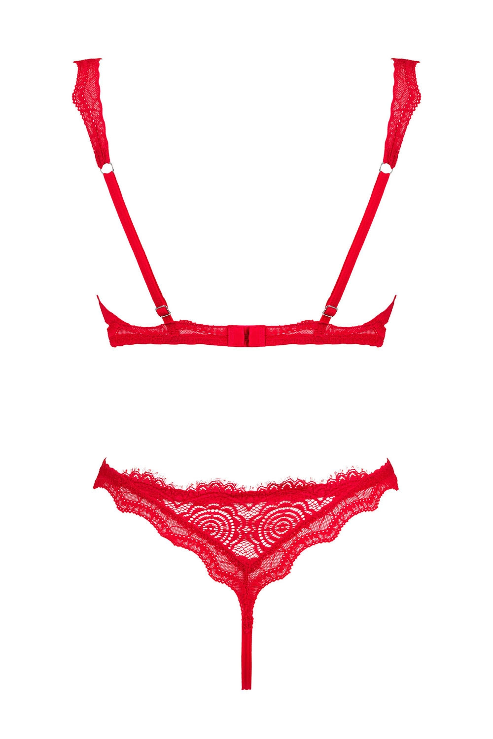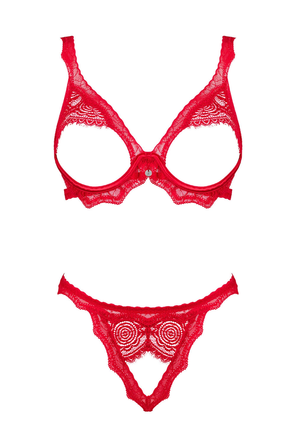 Obsessive Dame Reizwäsche Set 2-teilig Spitze Sexy Offene Cups String Bergamore, Rot