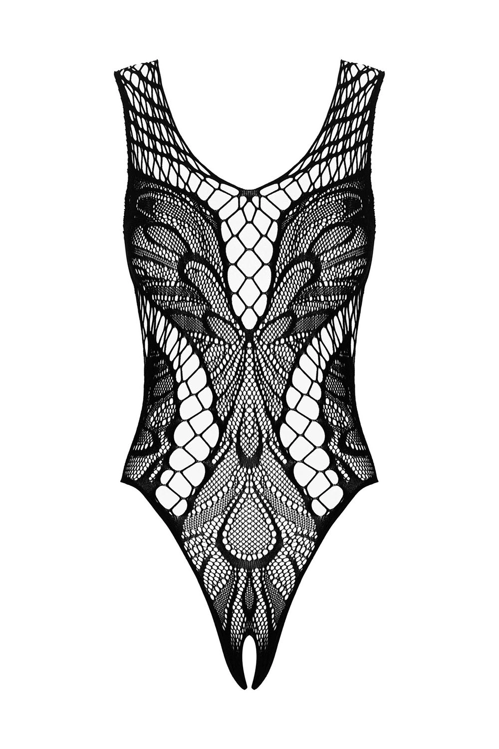 Pikanter Body aus elastischem Netz mit sinnlichem Muster.