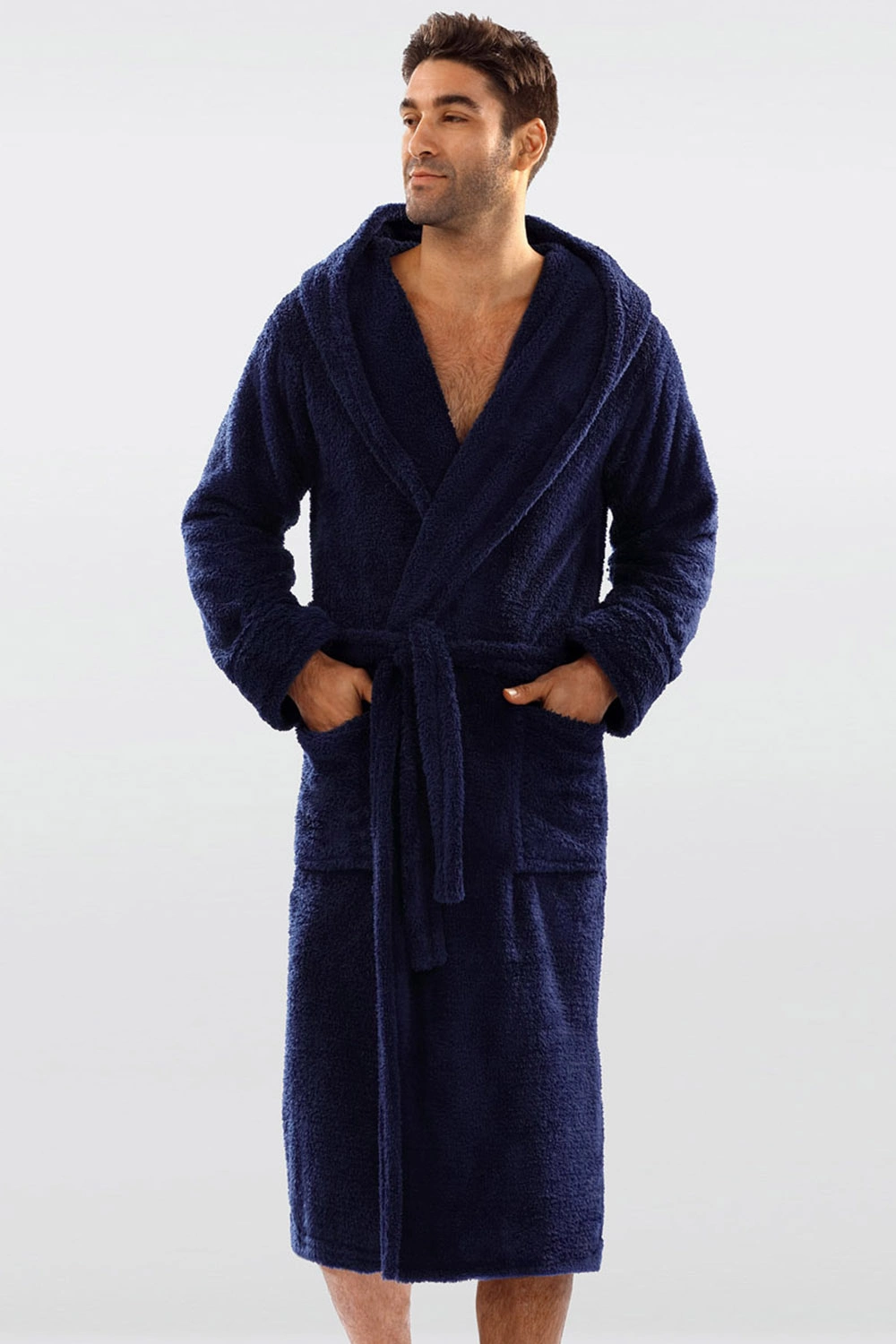 Klassischer Morgenmantel mit Kapuze für Herren.