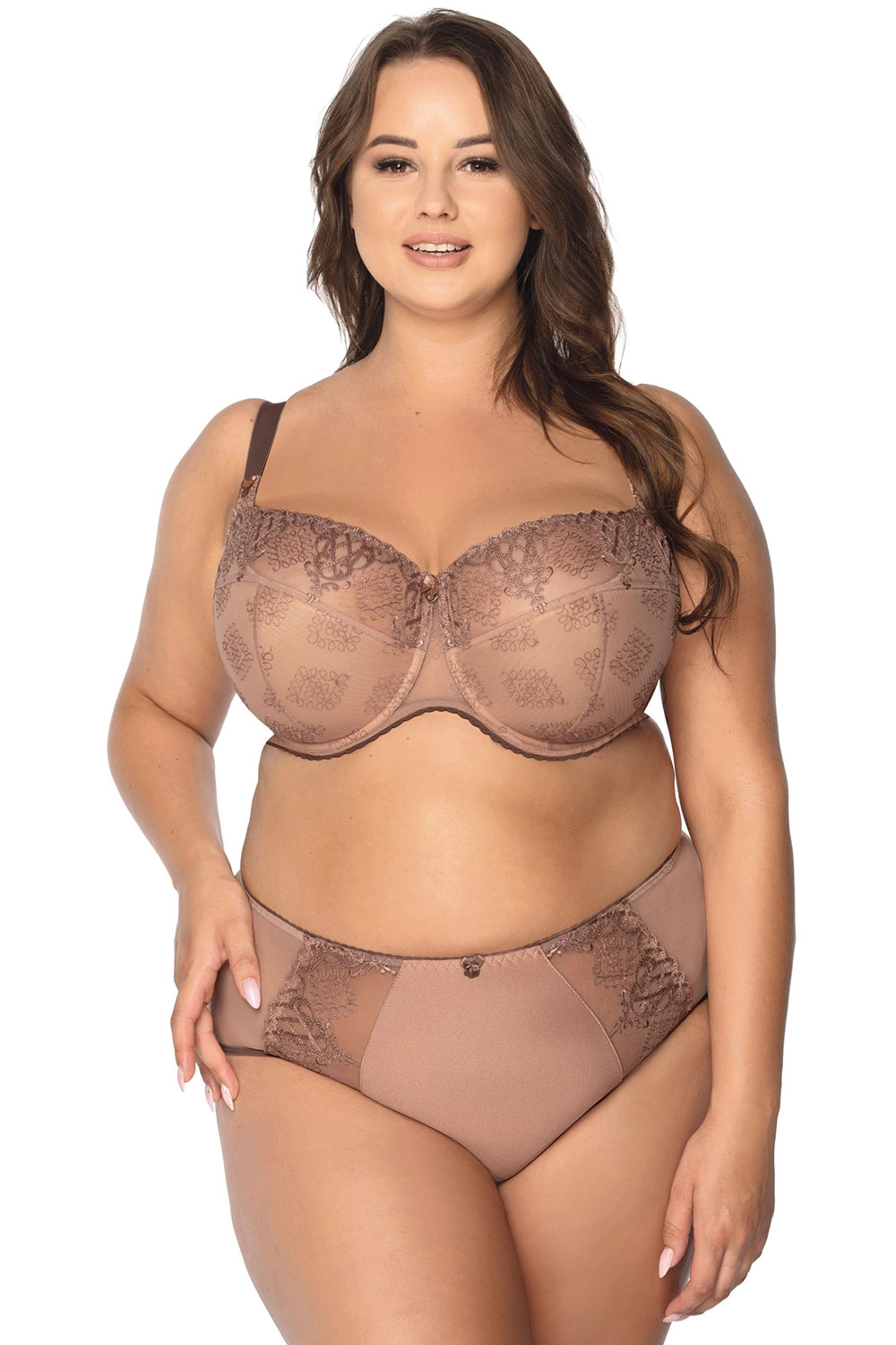 Gaia Dame halbversteifter BH Netz Stickerei Schalen Träger 1107M Elena Maxi, Braun