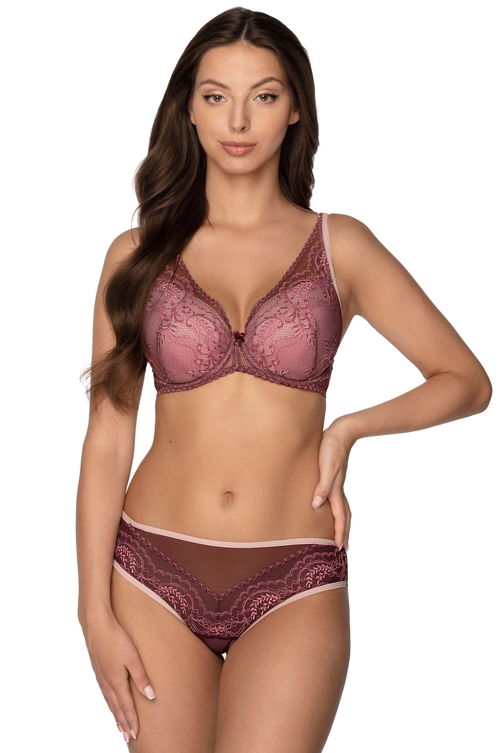 Gaia Dame Push-Up BH Einlagen Spitze Träger Schleife Dekollete Geblümt Dessous 1183 Irene, Weinrot