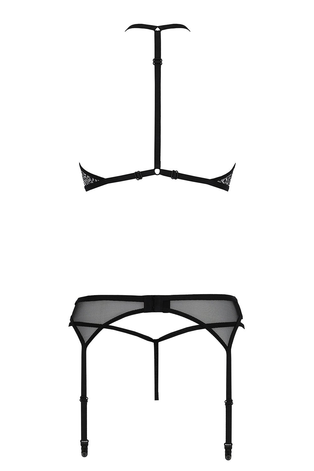 - Nicht versteifter BH, String und Stumpfgürtel mit Strapsen im Set