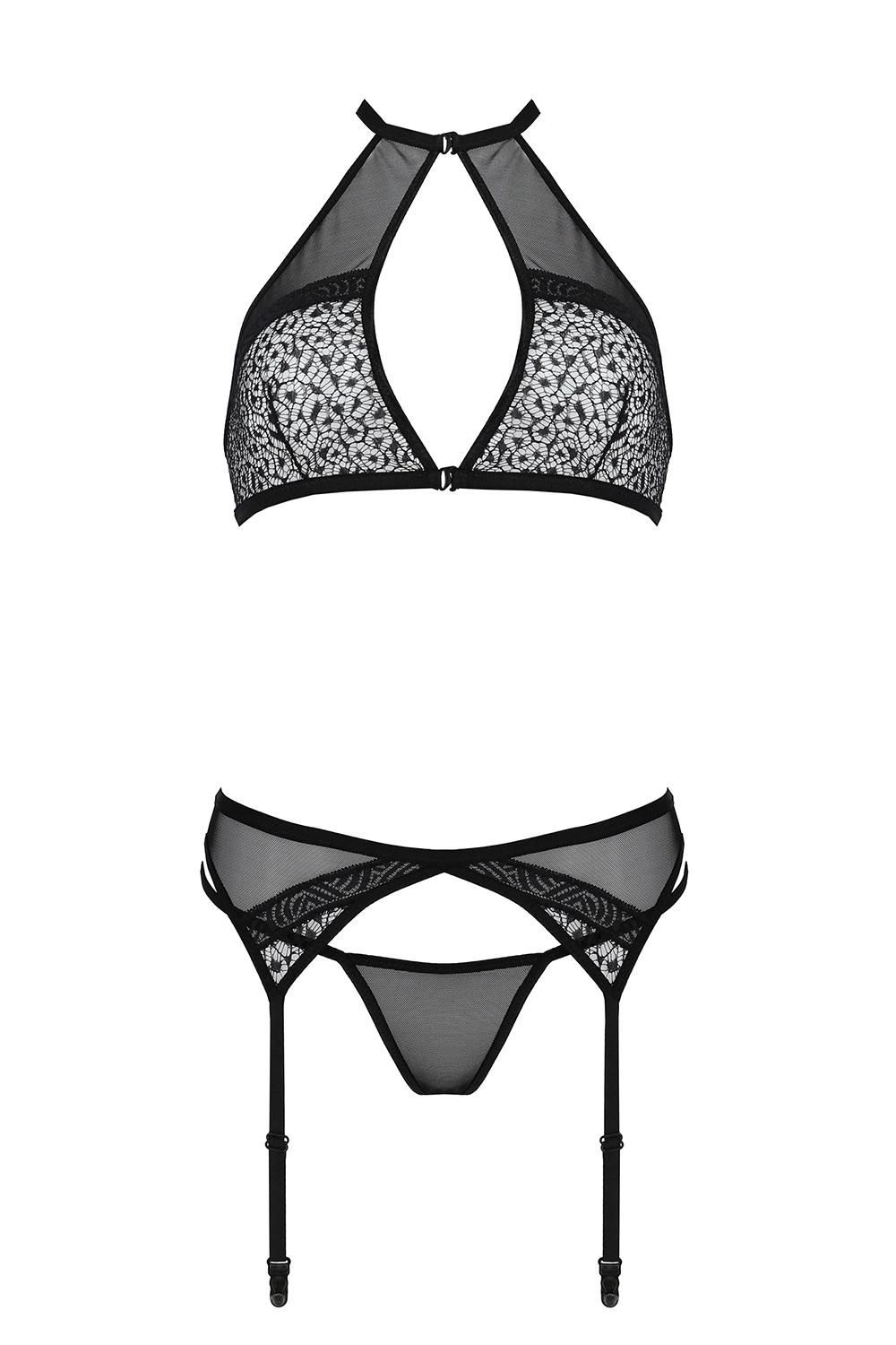 Passion Dame Reizwäsche Set 3-teilig Dessous Sexy Verführerisch Netz Gemustert Satara,
