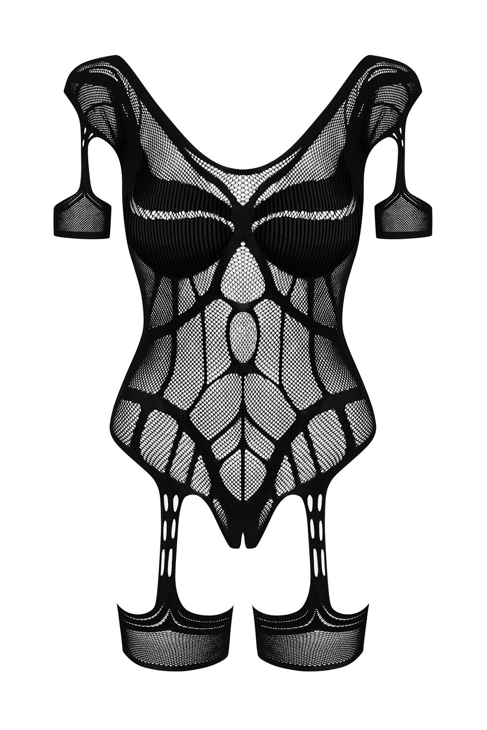 Obsessive Dame Damen Reizwäsche Gemustert Durchsichtig Ärmel Bodystocking G334, Schwarz