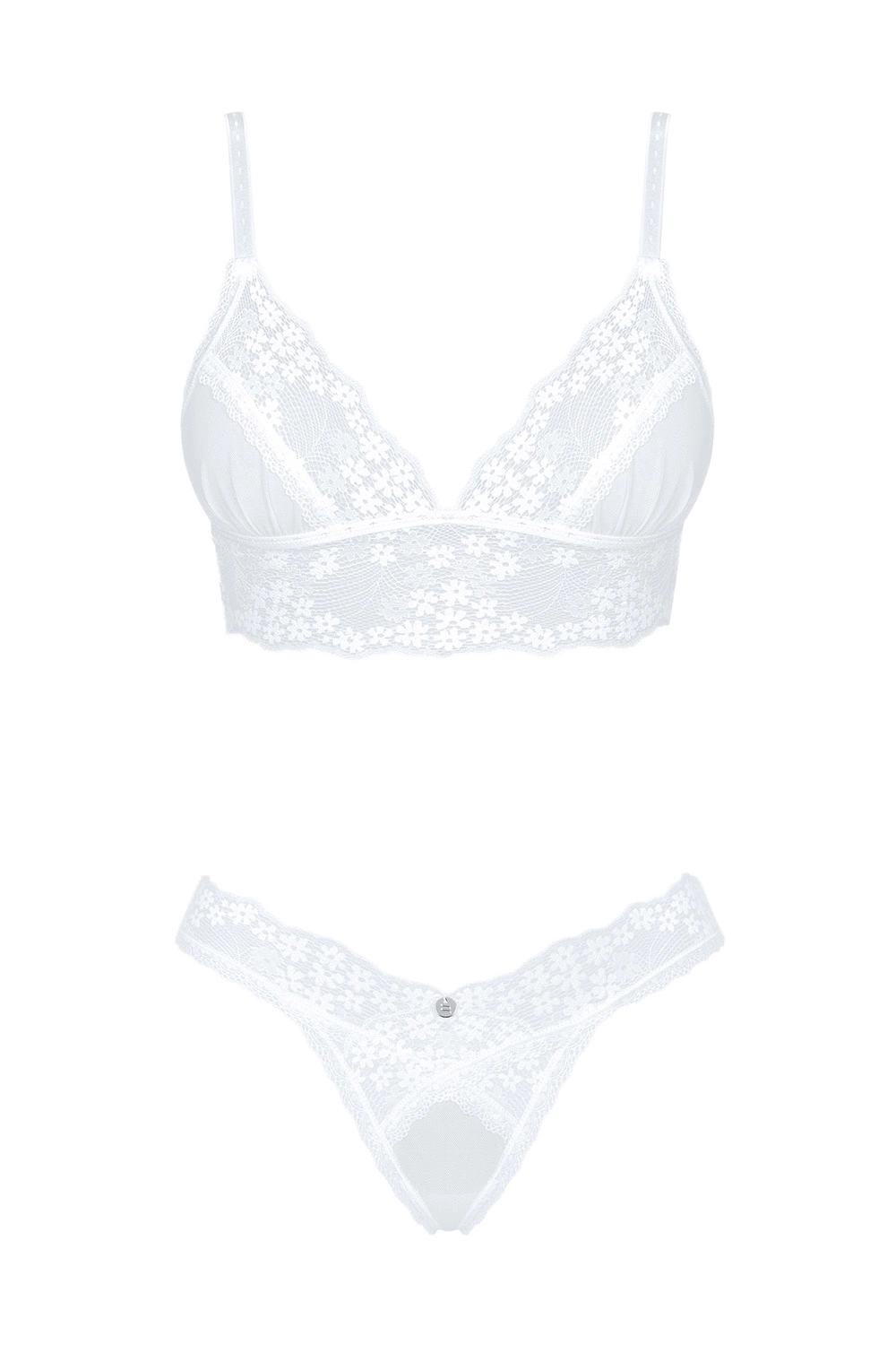 Obsessive Damen 2er Set Unterwäsche Set Spitze Sinnlich Geblümt Riezwäsche Heavenlly, Weiß