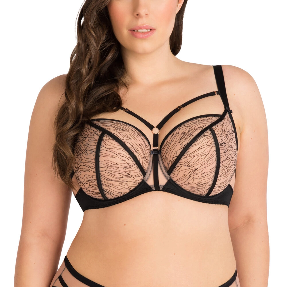 Gorsenia Dame Soft BH Große Brüste Bügel Gemustert Elegant Tüll K807 Cora, Schwarz