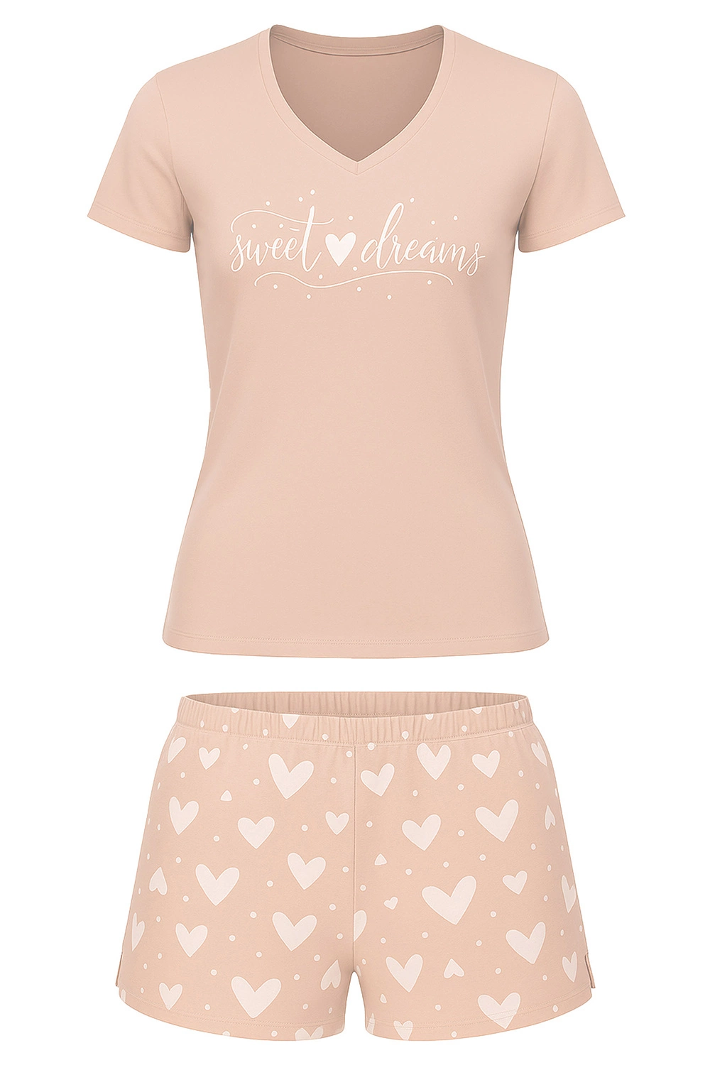 Vivisence Dame Schlafanzug 2-teiliges Set Pyjama T-Shirt Shorts Herzmuster Klassisch 2019,