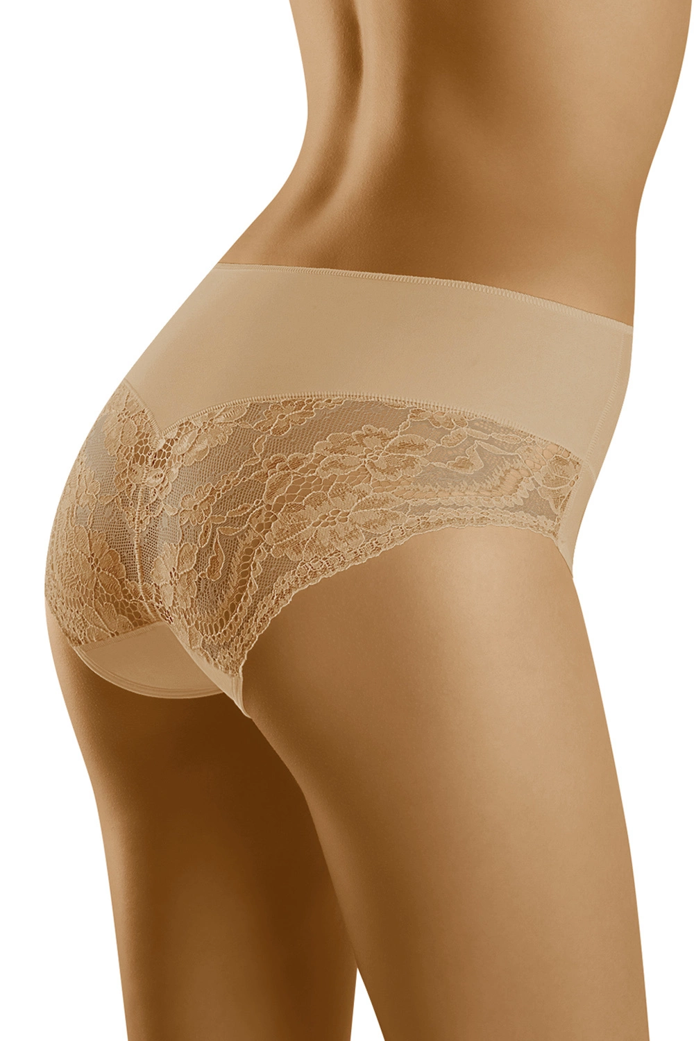 Modellierender Slip Wolbar WB465 wurde für Frauen gedacht, die Komfort und Eleganz schätzen. Mit Spitze verziert. Dieser Slip ist in drei klassischen Farben: Weiß, Schwarz und Beige verfügbar - ein echter Muss in der Garderobe jeder Frau.