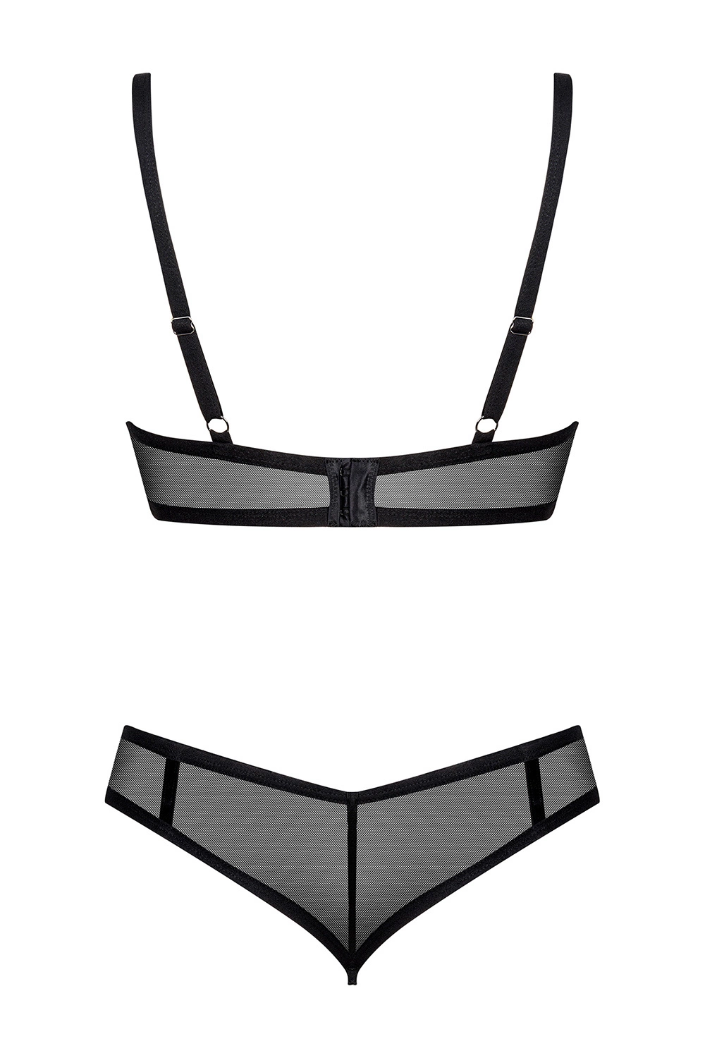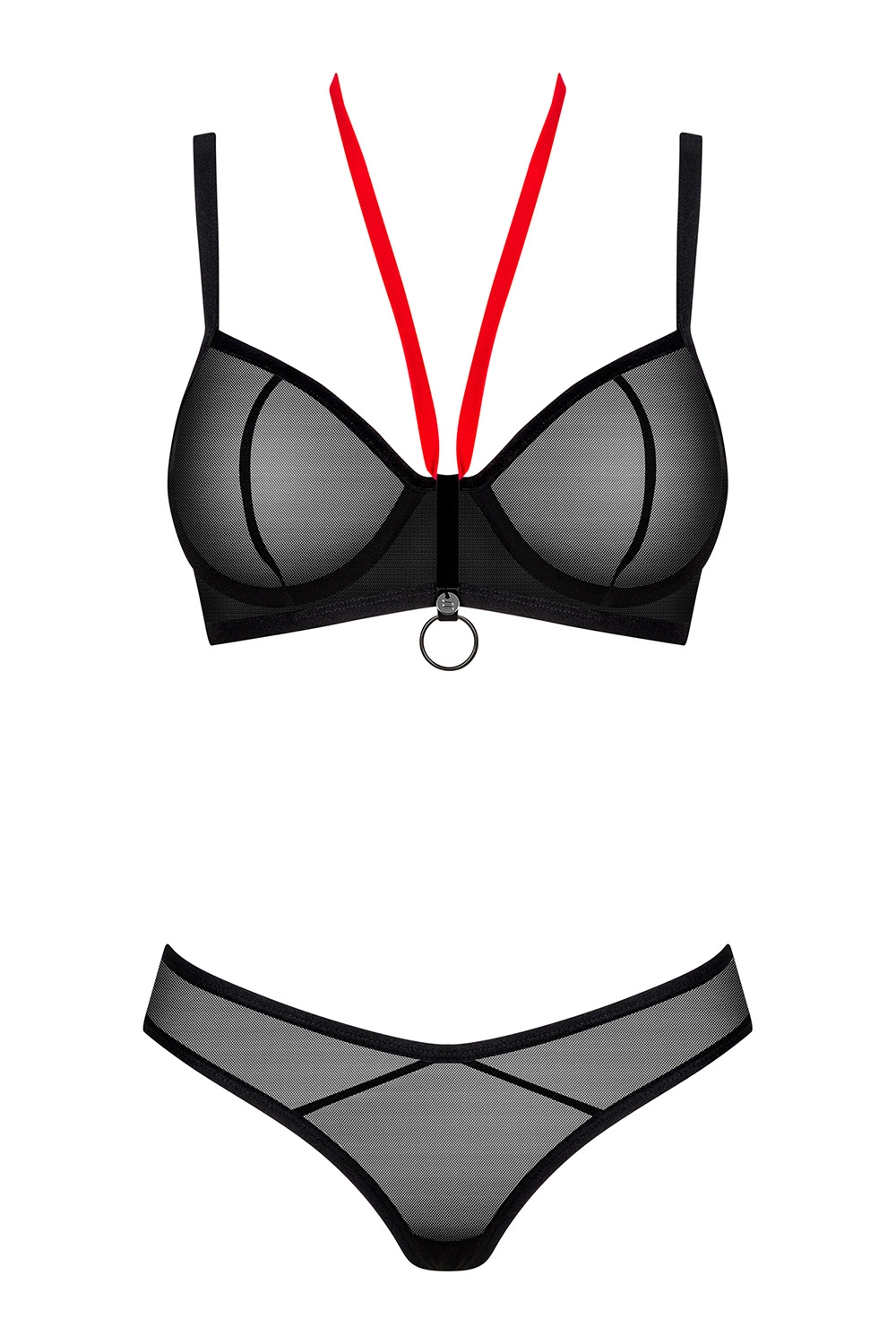 • Ein schwarzes verführerisches Set besteht aus einem BH und einem String mit tiefem Bund.