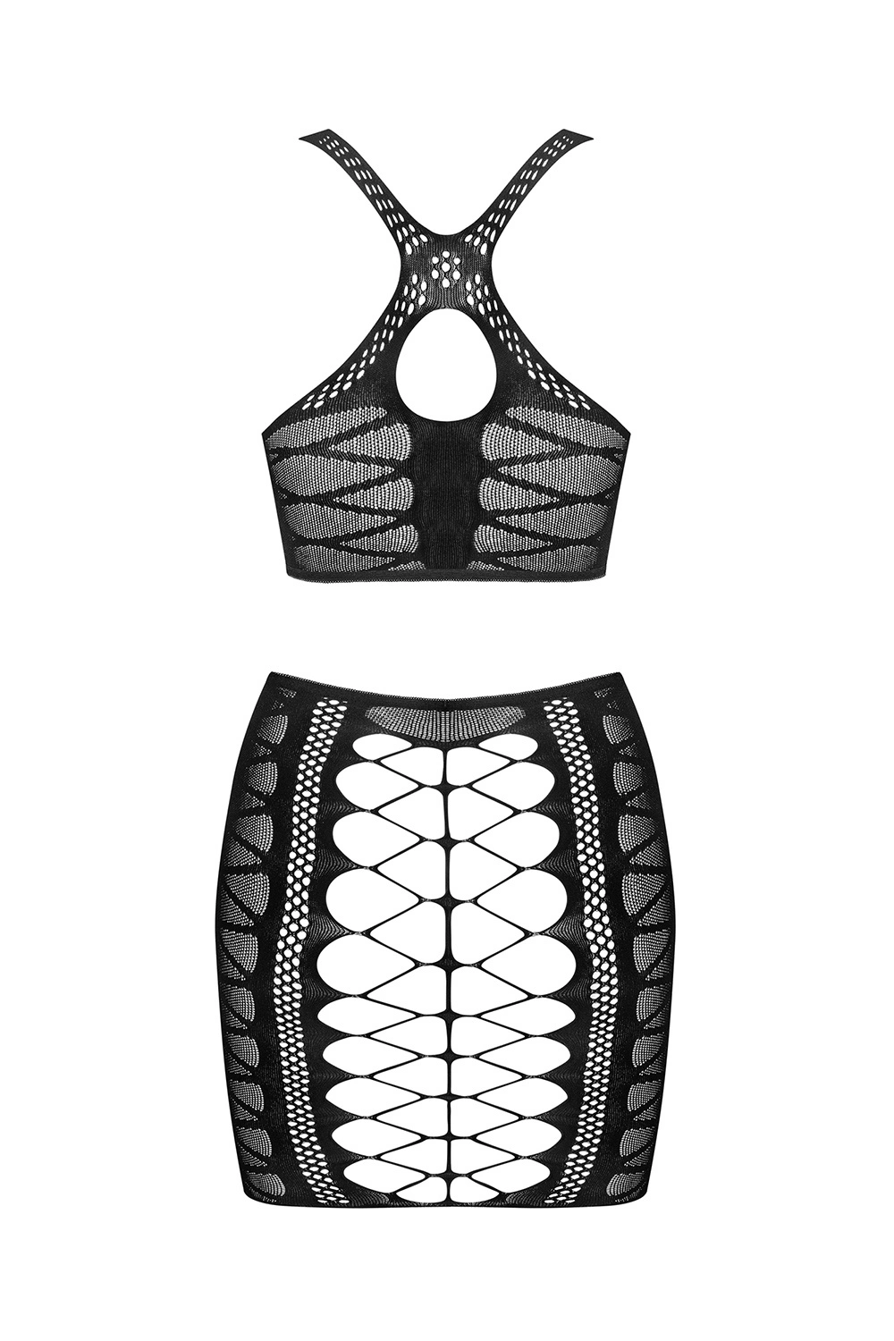 Obsessive Dame Reizwäsche 2-teiliges Set Top Rock Spitze Sexy Dessous Netz Sinnlich Verführerisch K102 , Schwarz