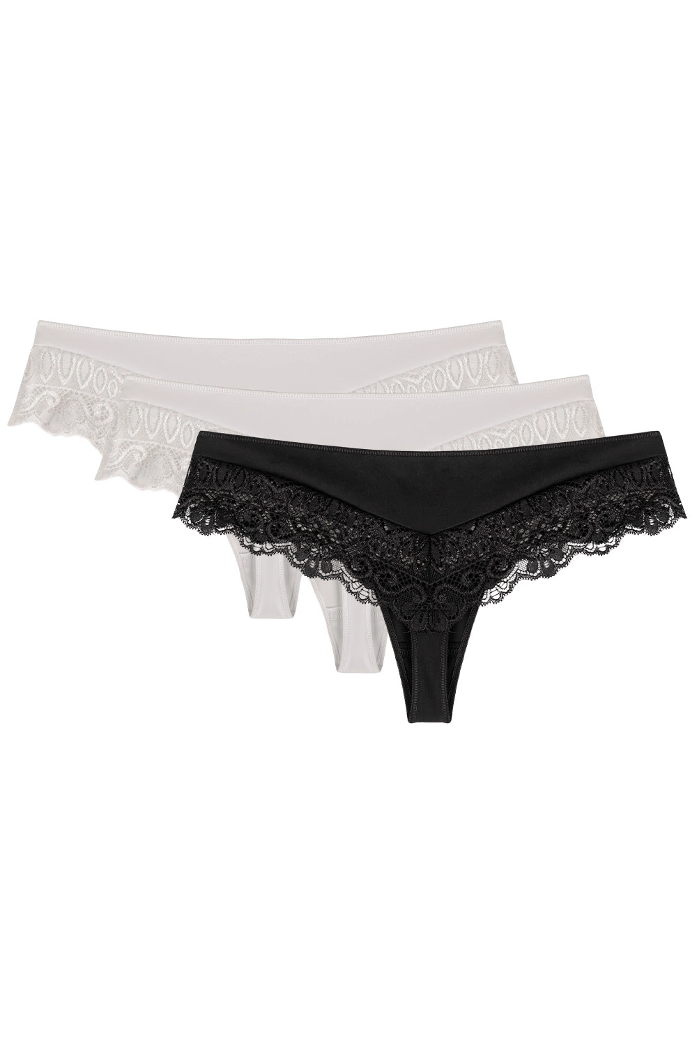 Wolbar Dame Shorts-Strings Spitze Stilvoll Elegant Verführerisch Dessous WB409 , Weiß/Weiß/Schwarz