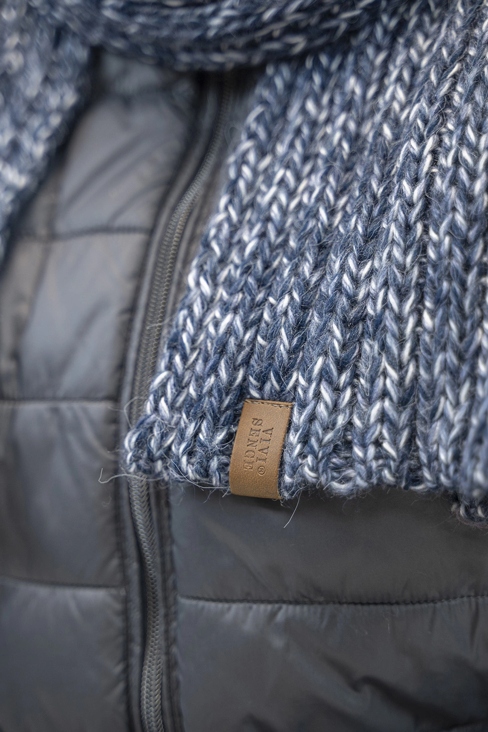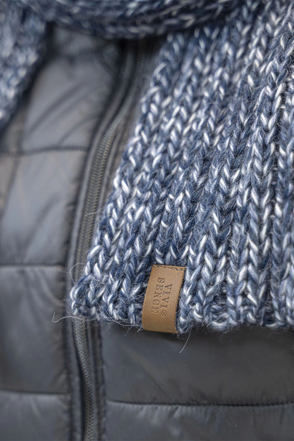 • ist aus warmem, zweifarbigem Garn gefertigt.