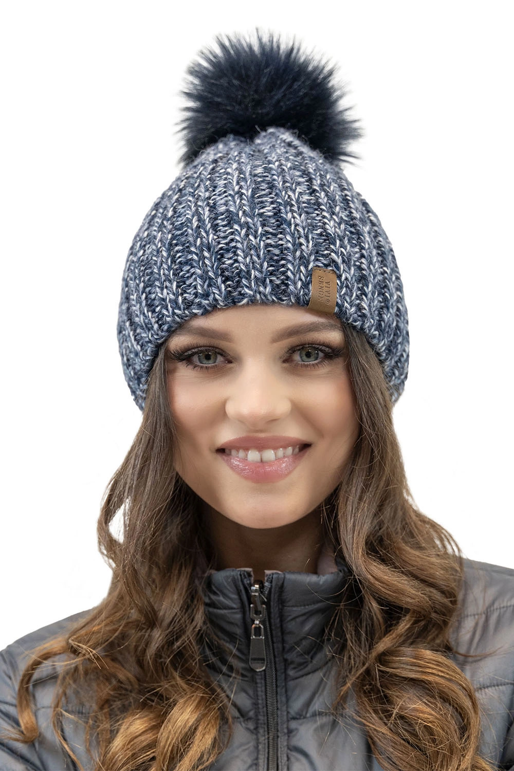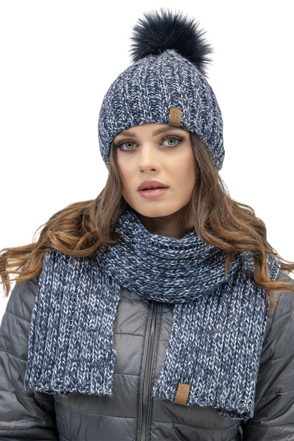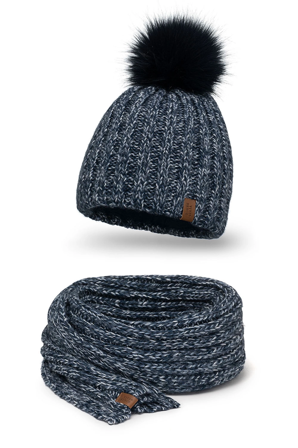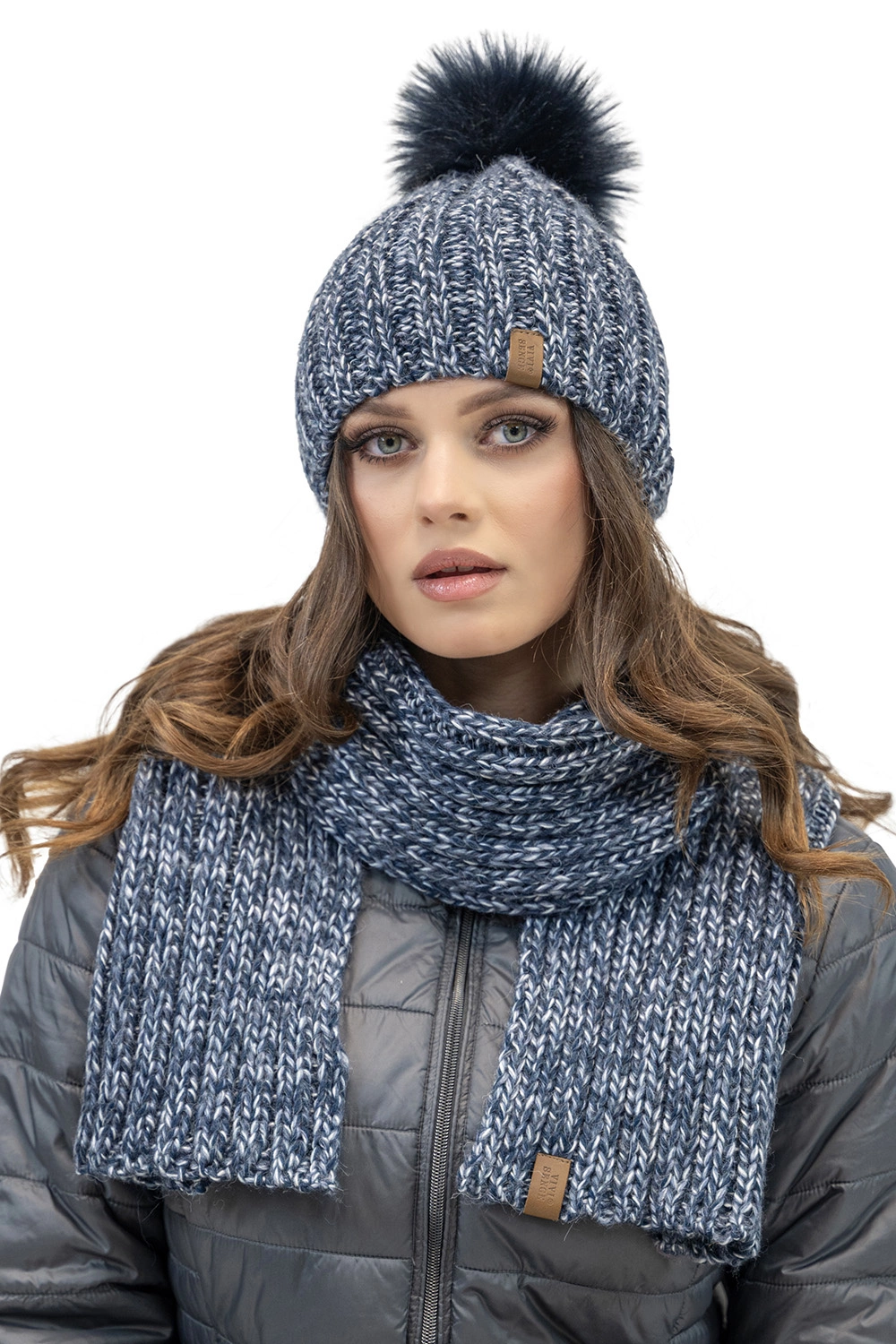 Vivisence Trendiges Damen Winterset Aus Weicher Mütze Mit Bommel Und Langer Schal Aus Zweifarbigem Garn Mit Antistatischem Futter Für Optimalen Schutz Vor Kälte Ideal Für Wintertage, dunkelblau
