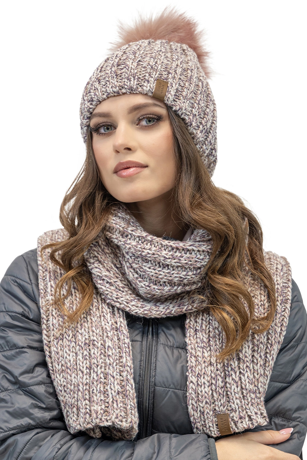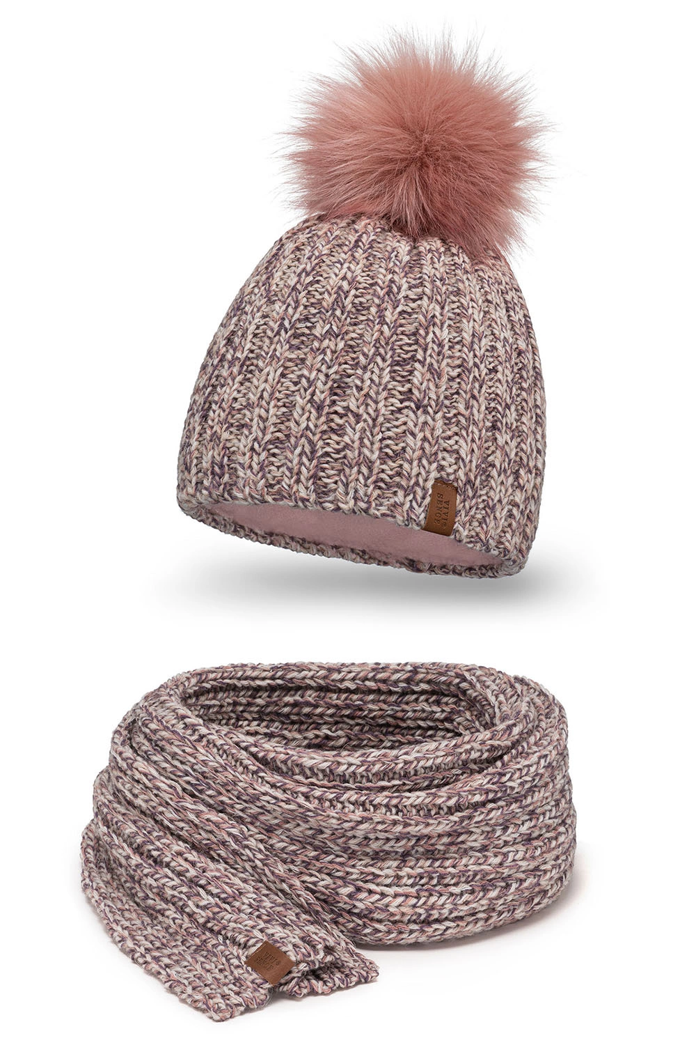 Vivisence Trendiges Damen Winterset Aus Weicher Mütze Mit Bommel Und Langer Schal Aus Zweifarbigem Garn Mit Antistatischem Futter Für Optimalen Schutz Vor Kälte Ideal Für Wintertage, rosa
