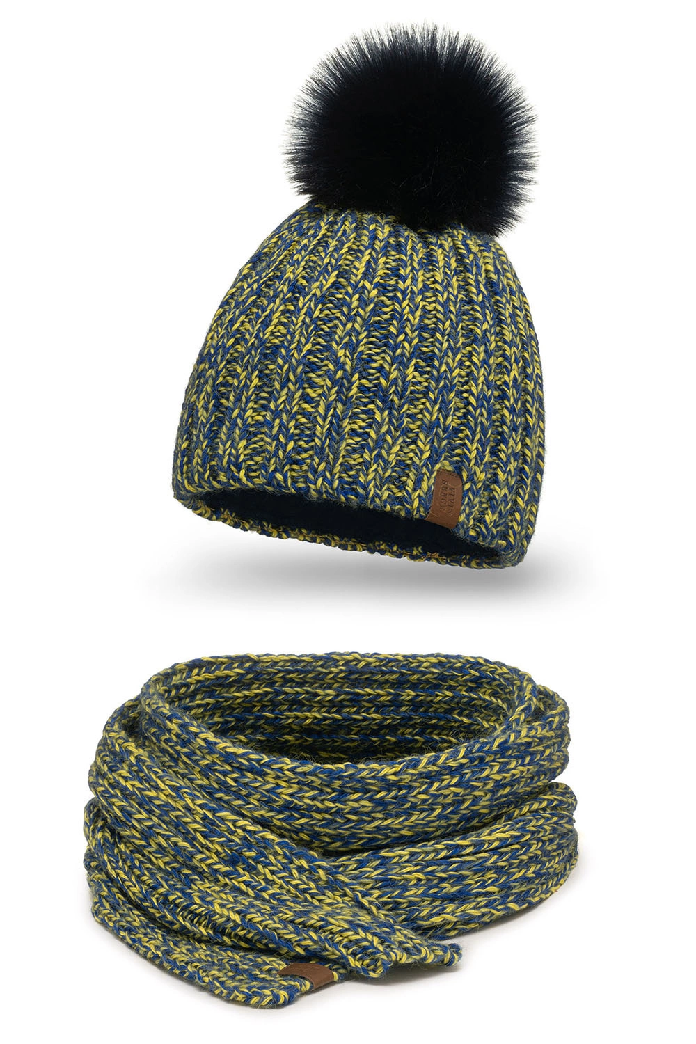 Vivisence Trendiges Damen Winterset Aus Weicher Mütze Mit Bommel Und Langer Schal Aus Zweifarbigem Garn Mit Antistatischem Futter Für Optimalen Schutz Vor Kälte Ideal Für Wintertage, gelb