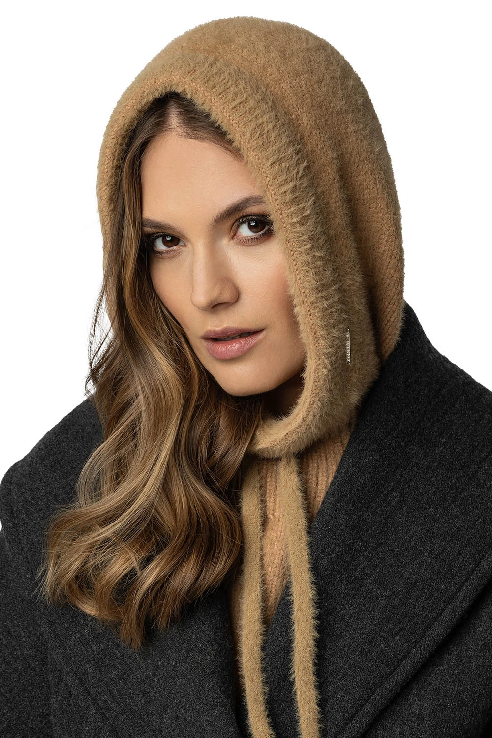Vivisence Damen Schal Warm Winter Schalmütze Kapuzen Balaclava Garn 7097, karamellfarben
