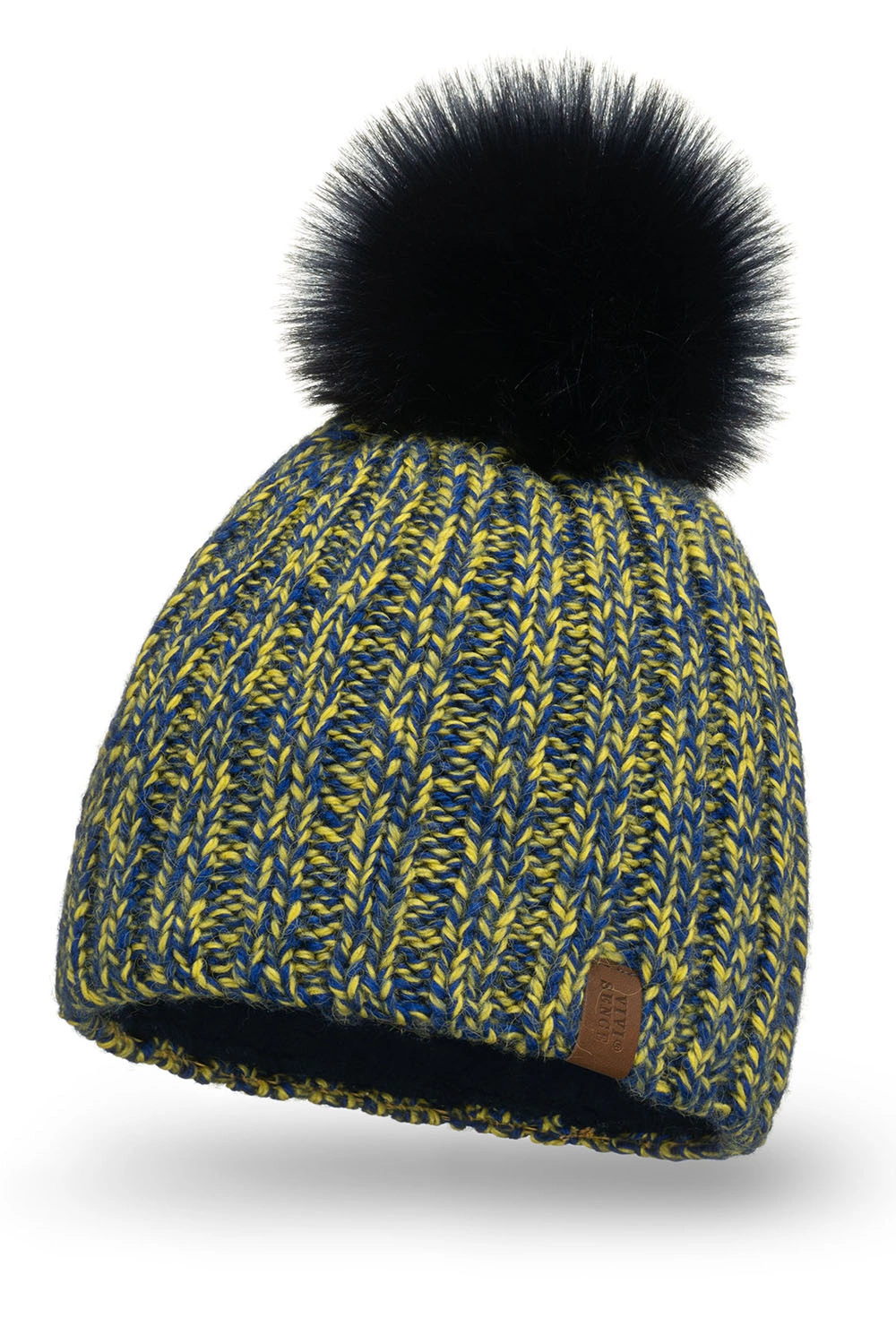 Vivisence Winter Bommelmütze für Damen Herbst Frauen Wintermütze mit Bommel Antistatischem Innenfutter Perfekte Passform für Kalte Wintertage Modell 7086, gelb