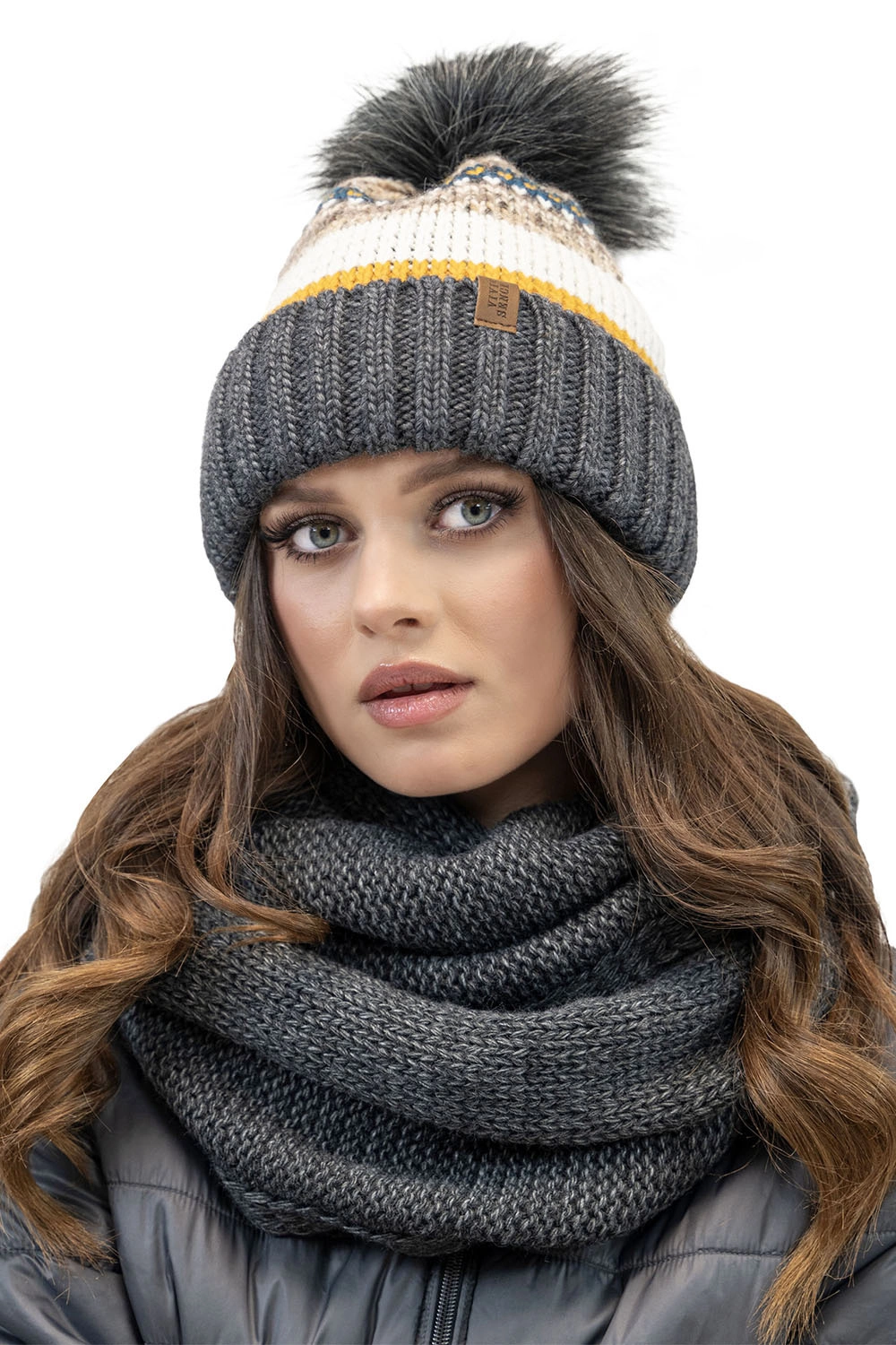 Vivisence Damen Bommelmütze Winter Bommel Wärmendem Garn Antistatischer 7099, dunkelgrau