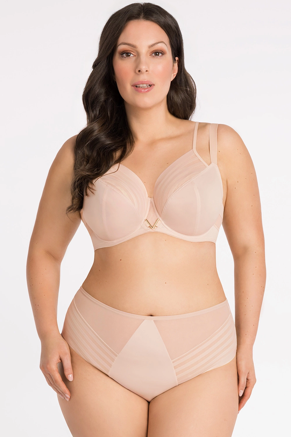 Weicher BH für Frauen mit mittelgroßen, großen und auch sehr großen Brüsten. Höherer Steg und zur Seite versetzte Träger sammeln die Brüste und verleihen eine große Hebung.