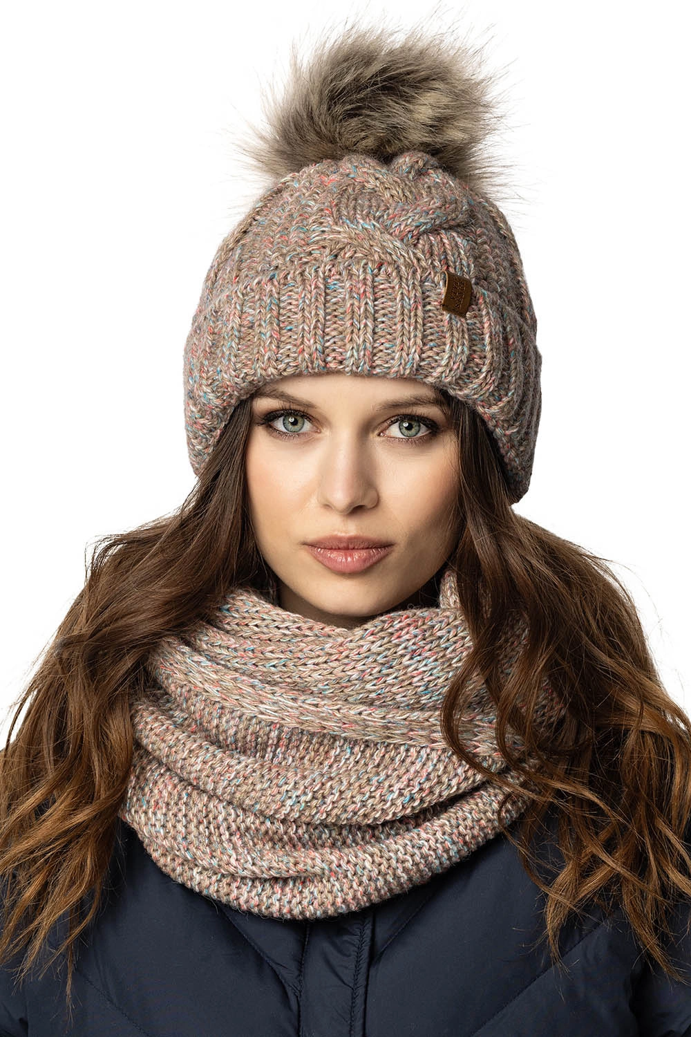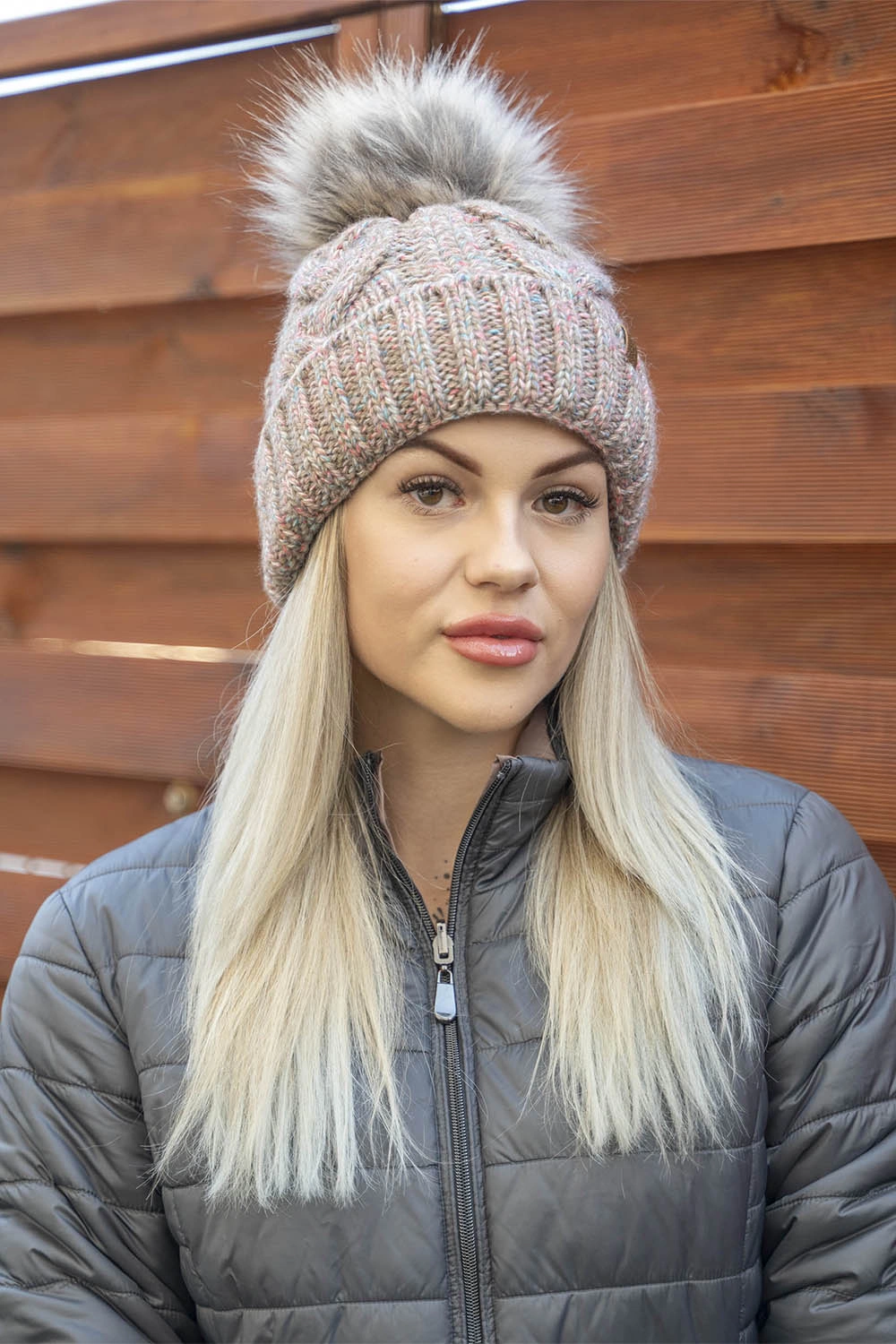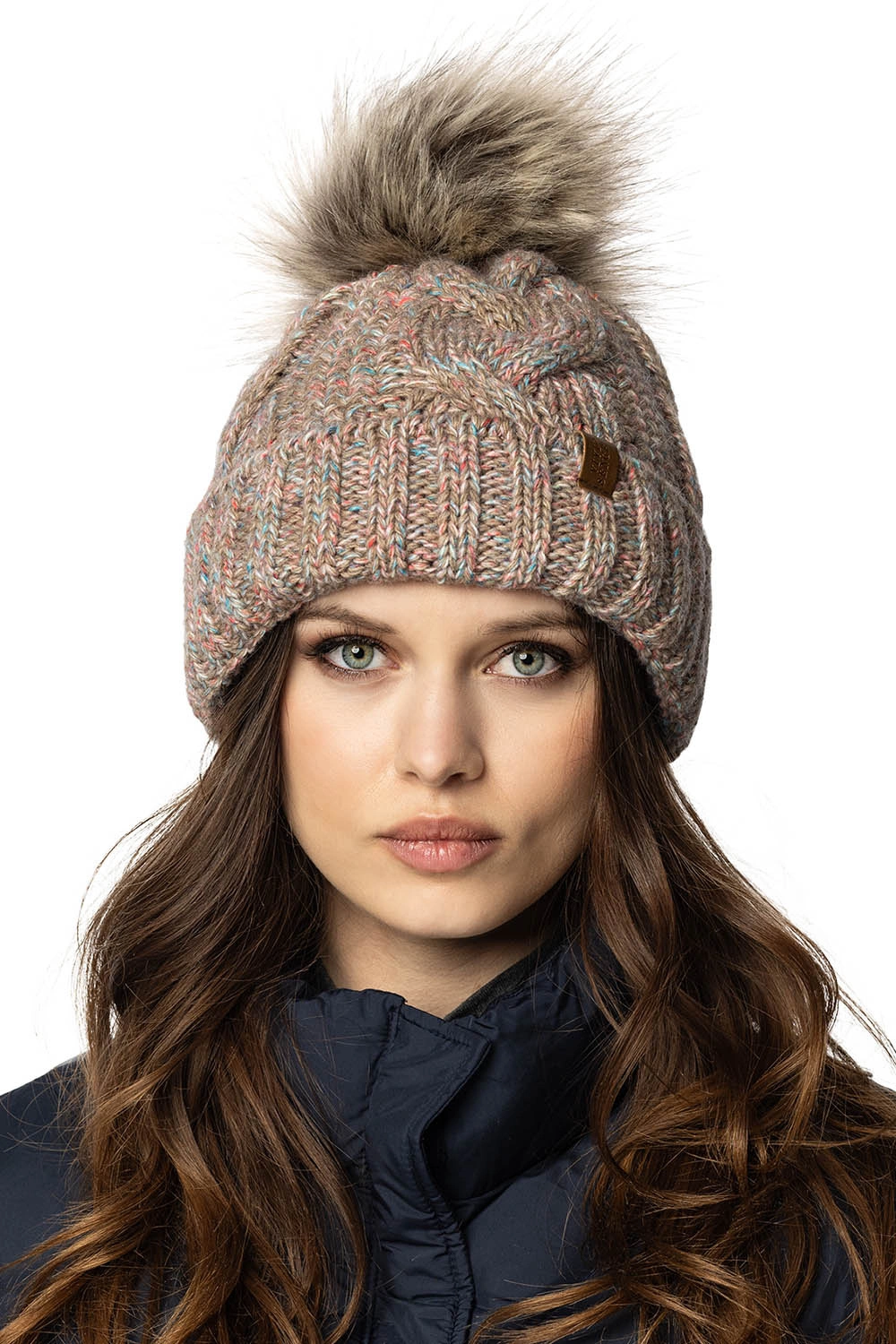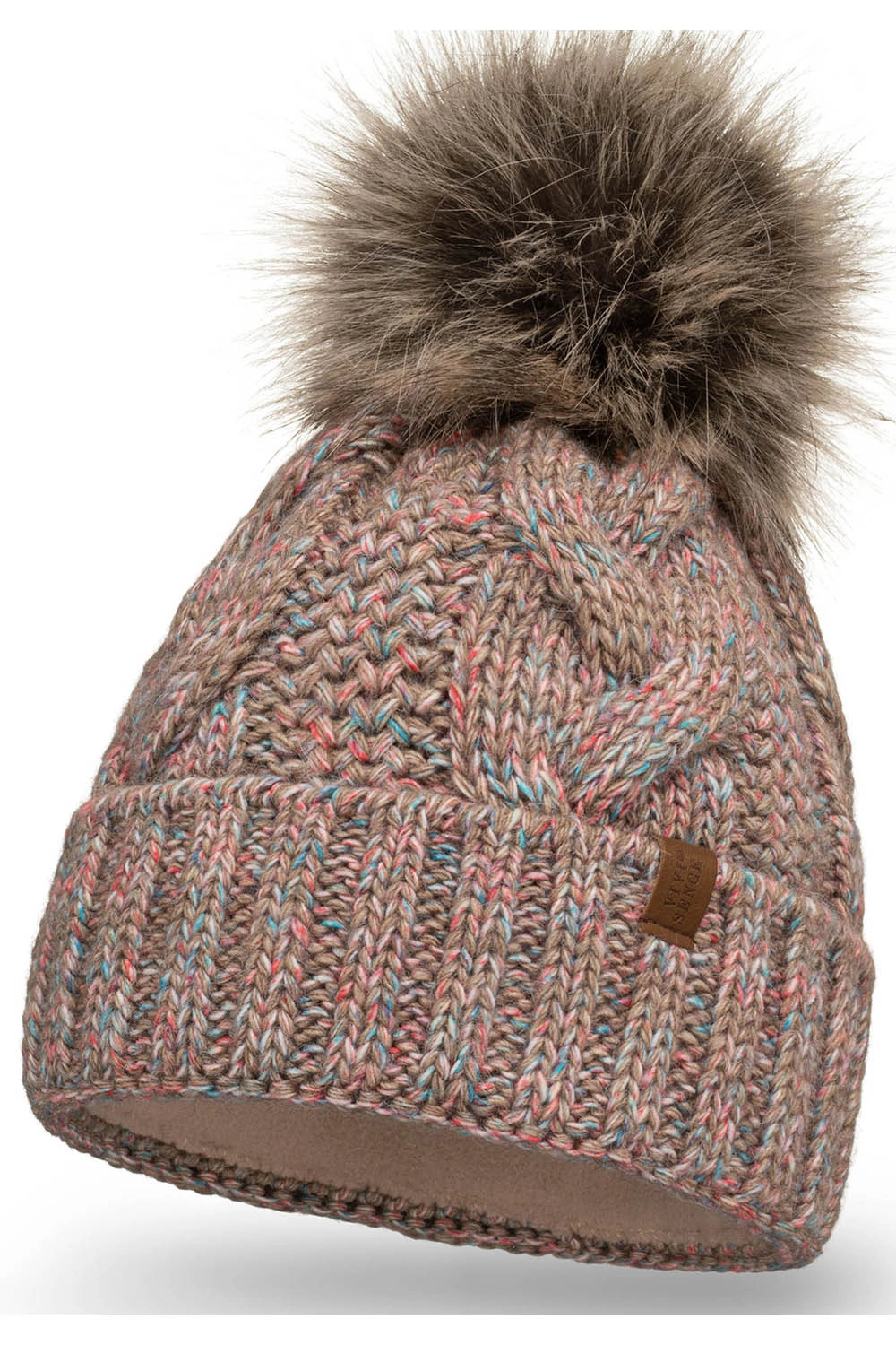 VIVISENCE Wintermütze mit Bommel Damen Warmes Ideal Für Kalte Wintertage 7014, braune Melange