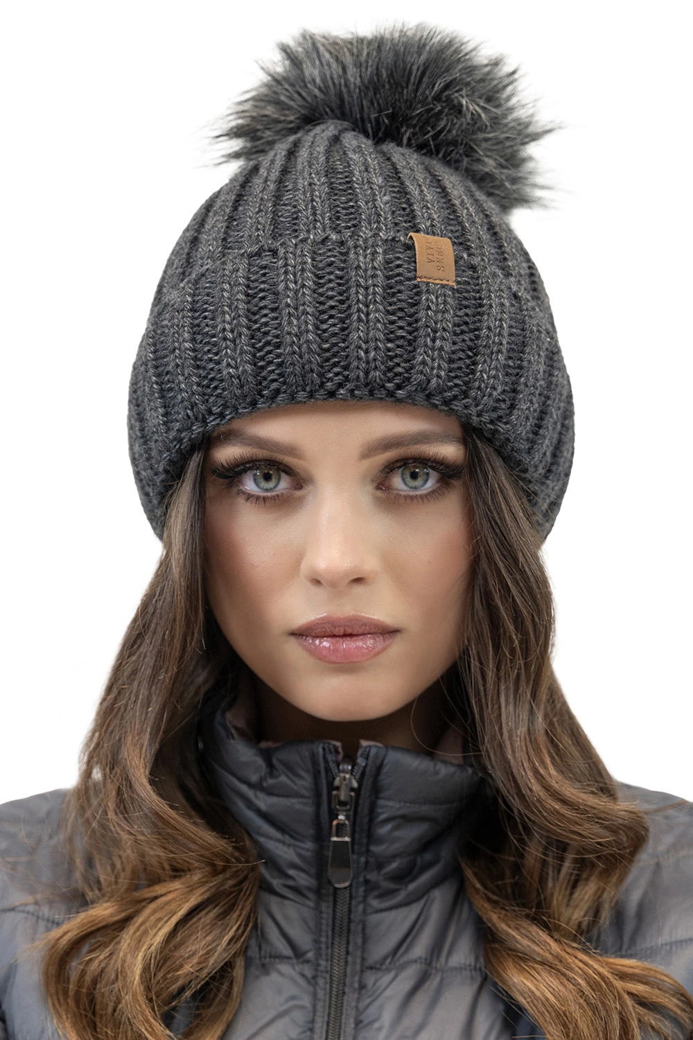 - Mütze ist mit einem Bommel aus Kunstpelz versehen