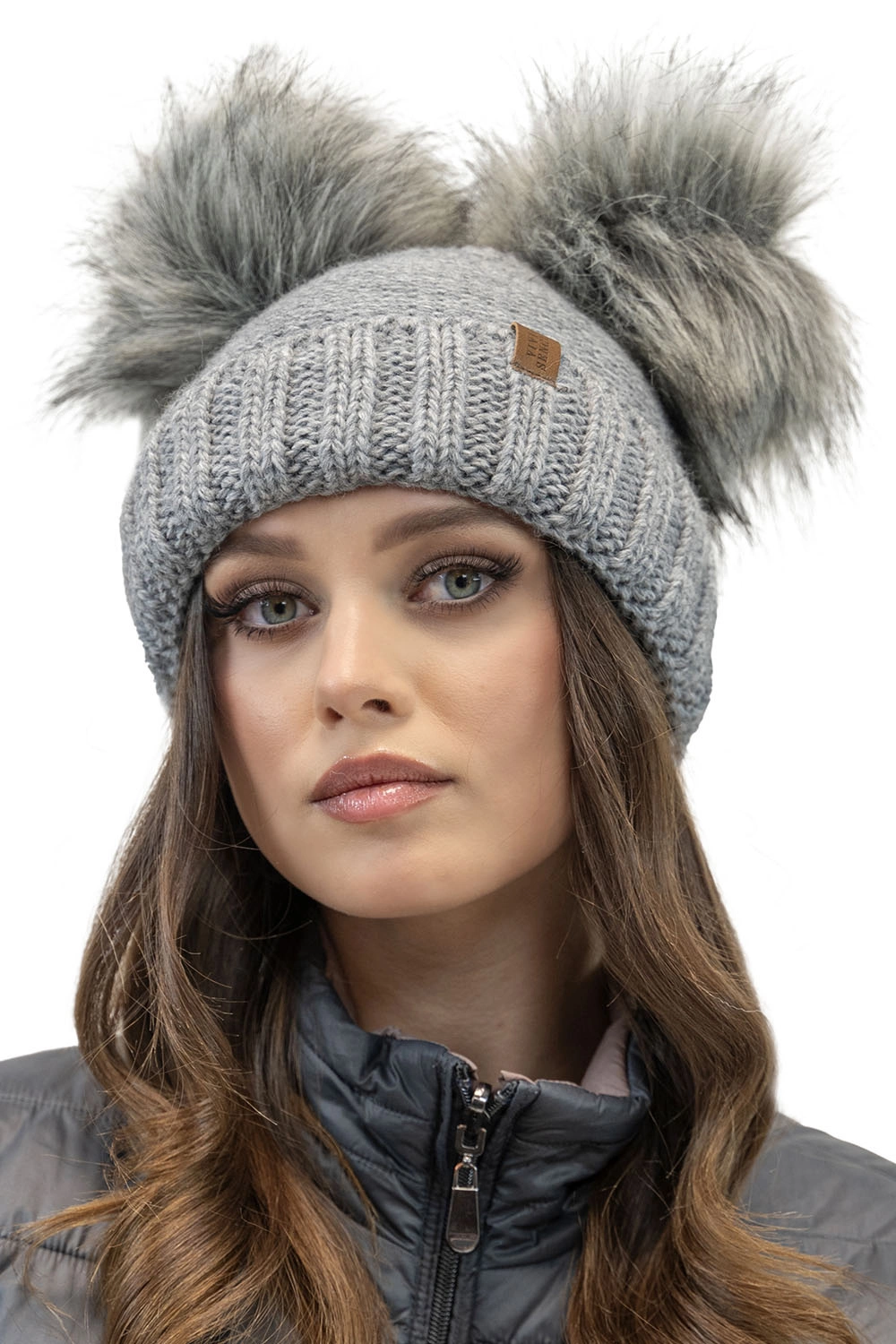 - die Mütze ist mit zwei großen Bommeln aus umweltfreundlichen Fasern verziert