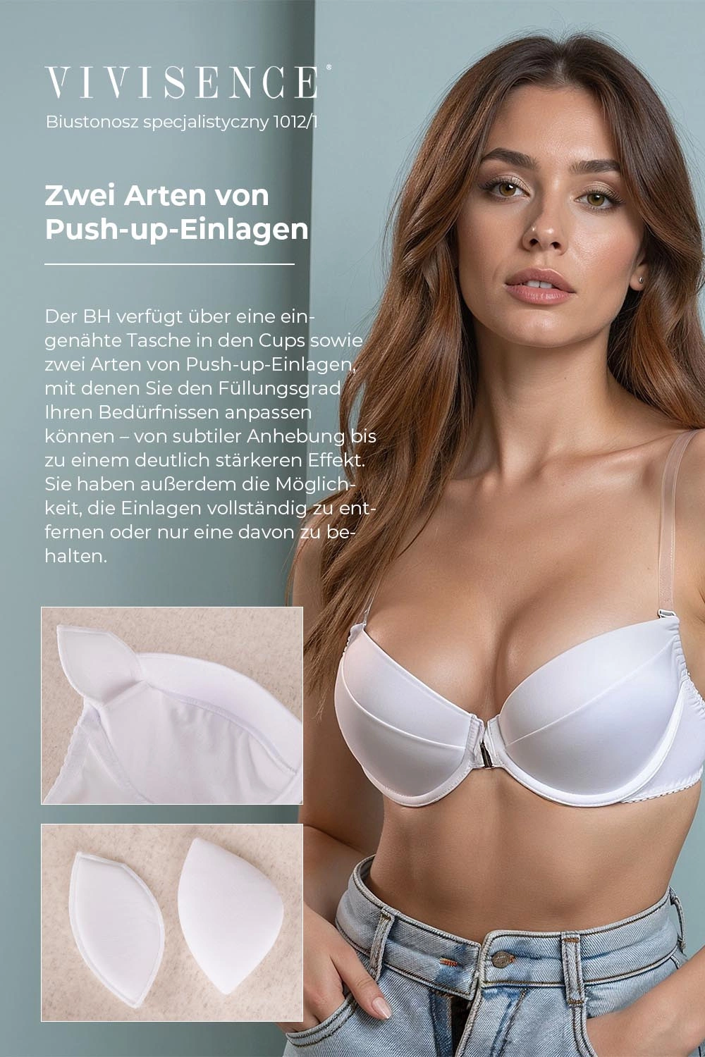 Vivisence Push Up BH Damen Silikonträger Rückenfrei Formbügel Frontverschluss 1012/1, weiß