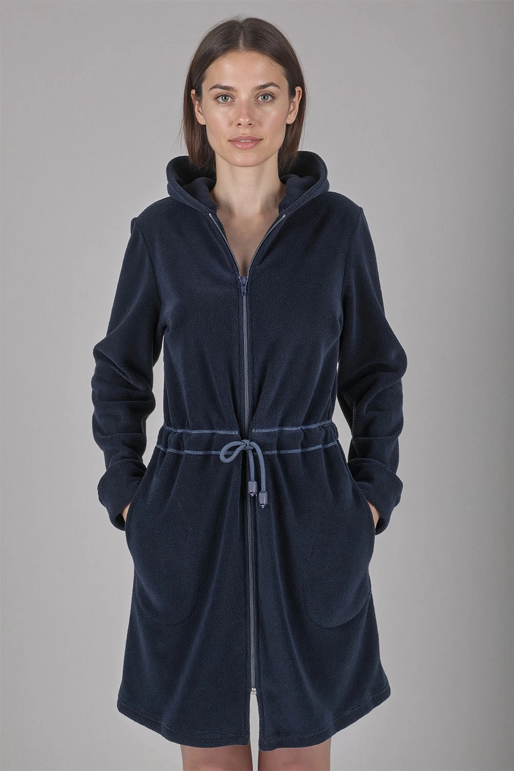 Vivisence Bademantel Baumwoll mit Reißverschluss Weiches Und Warmes Material Perfekt Für Das Abendliche SPA 5012, dunkelblau