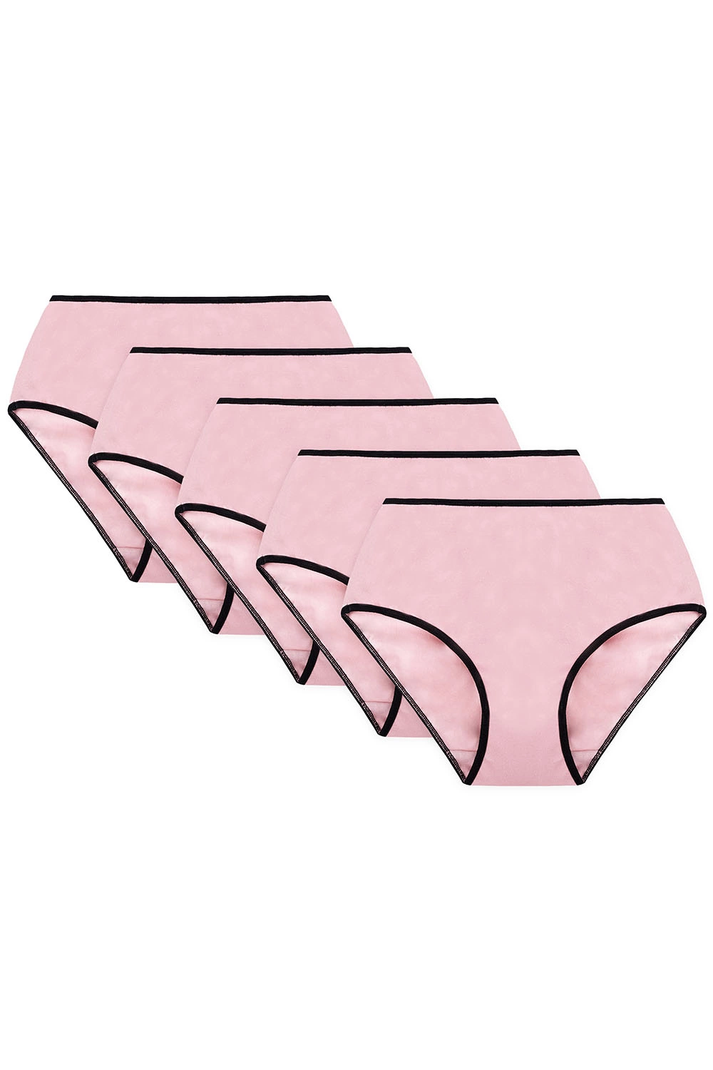Vivisence Dame Slip Hoher Bund Voll Klassisch Unterhose Baumwolle Alltag 4017, schwarzes Gummiband:pink 5-pack