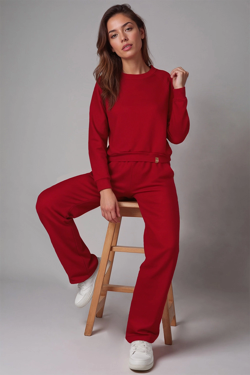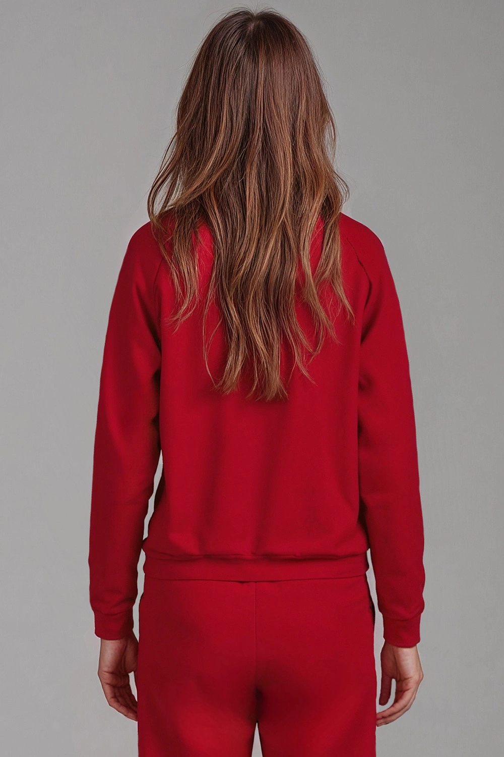 Vivisence Sweatshirt Damen Mit Rundhalsausschnitt Aus Baumwolle Langer Ärmel Bequemer Schnitt 9004, rot