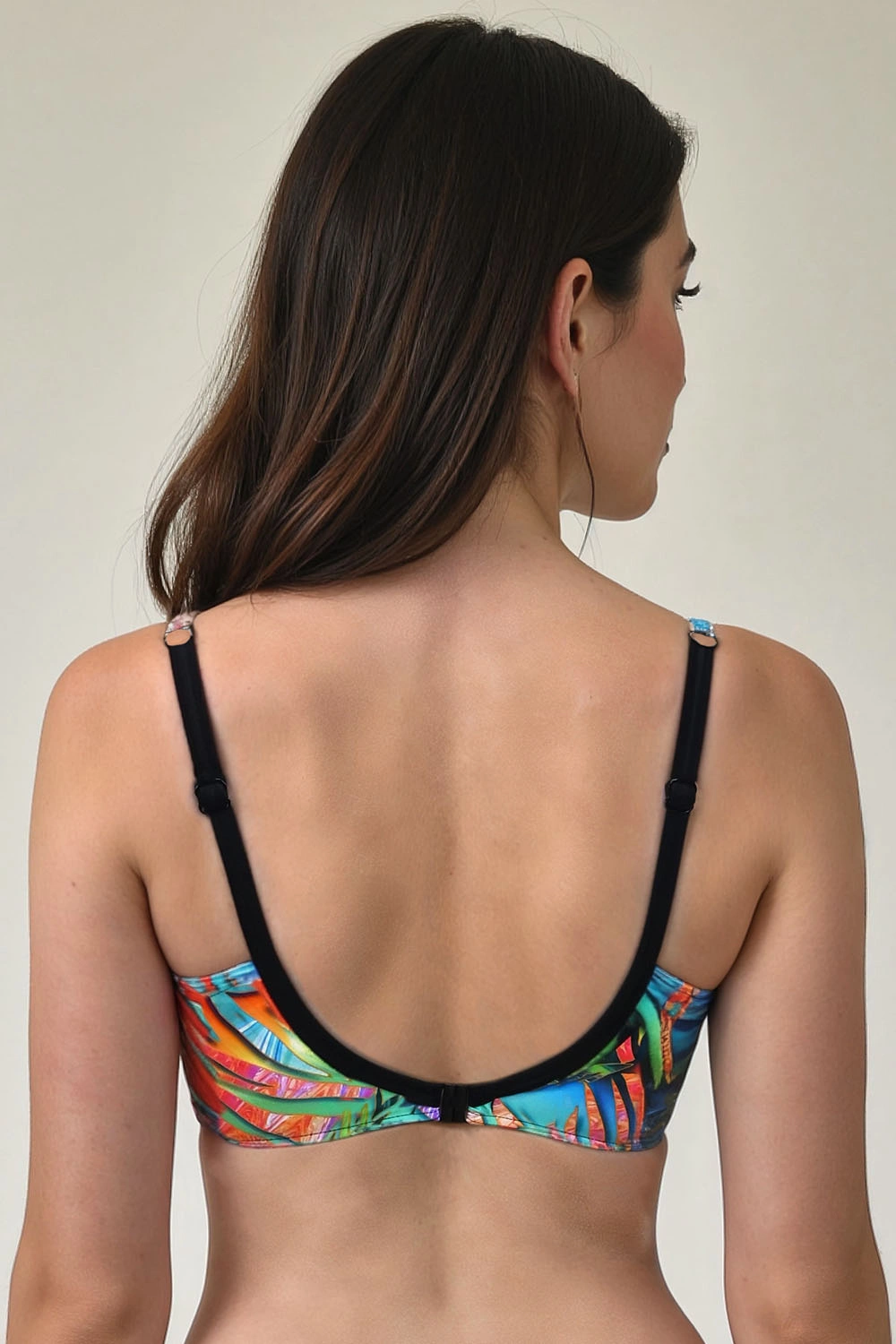 Vivisence Bikini Oberteil Gepolstert Mit Bügel Klickverschluss Tropisches Muster Für Damen Urlaub, orange-grün