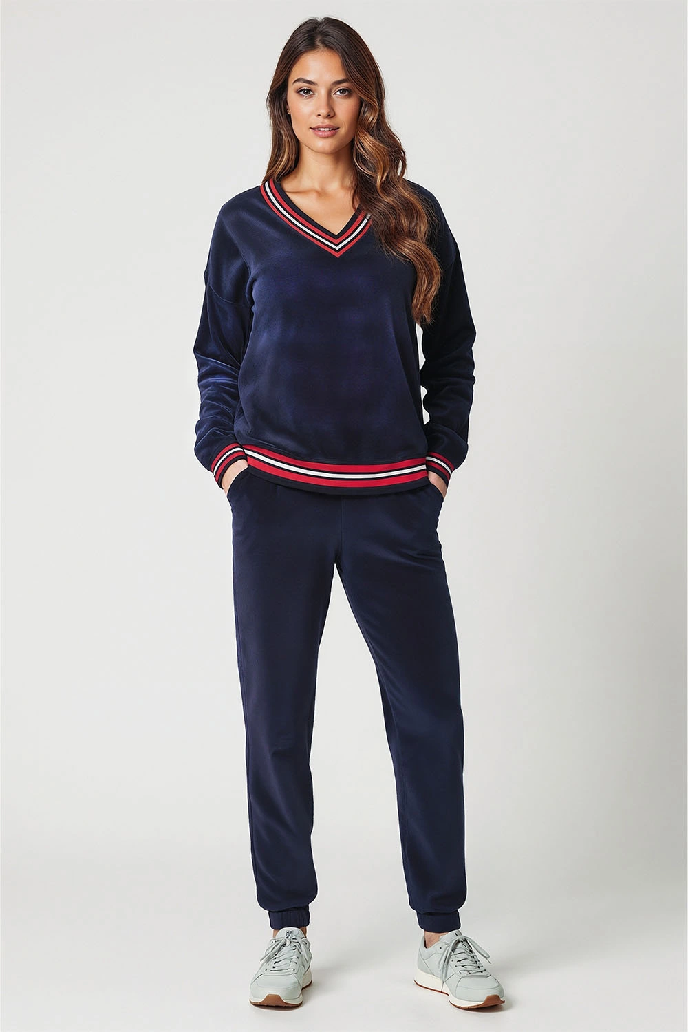 Vivisence Dame Sweatshirt Sporthemd Velvet Velours Alltag Homewear Klassisch Sport Jogging 9001,