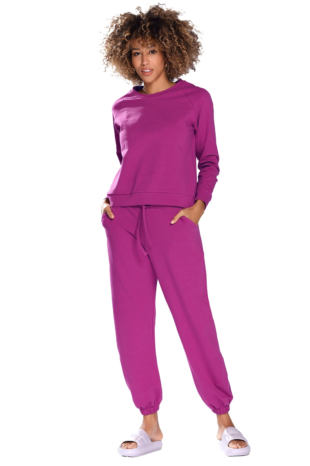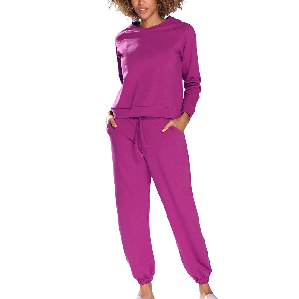 Dkaren Dame Homewear Set Bequem Musterlos Rundhlasausschnitt Komfortabel Wenezja, fuchsia