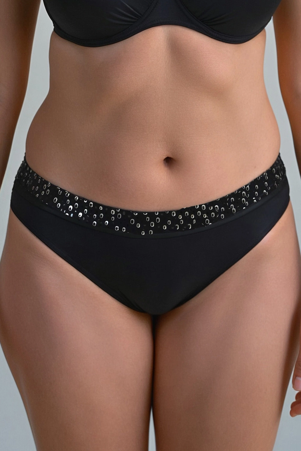 Vivisence Damen Bikinihose Mit Vollem Schnitt Glattes Material Hoher Tragekomfort Widerstandsfähig Gegen Verfärbung Und Verformung Perfekt Für Strand Und Pool, schwarz-silbern