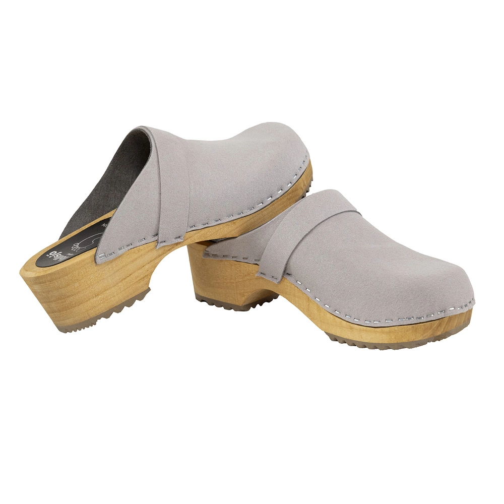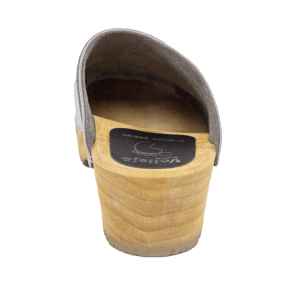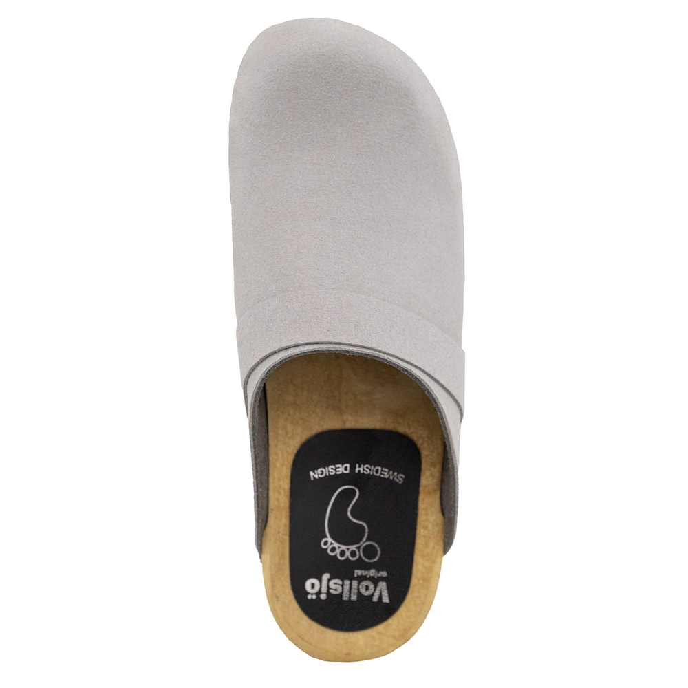 Vollsjö Damen Veganclogs aus Holz und Mikrofaser Hausschuhe Freizeitschuhe, Heimschuhe, Hergestellt in der EU 125-901S-D, Mikrofaser-Grau