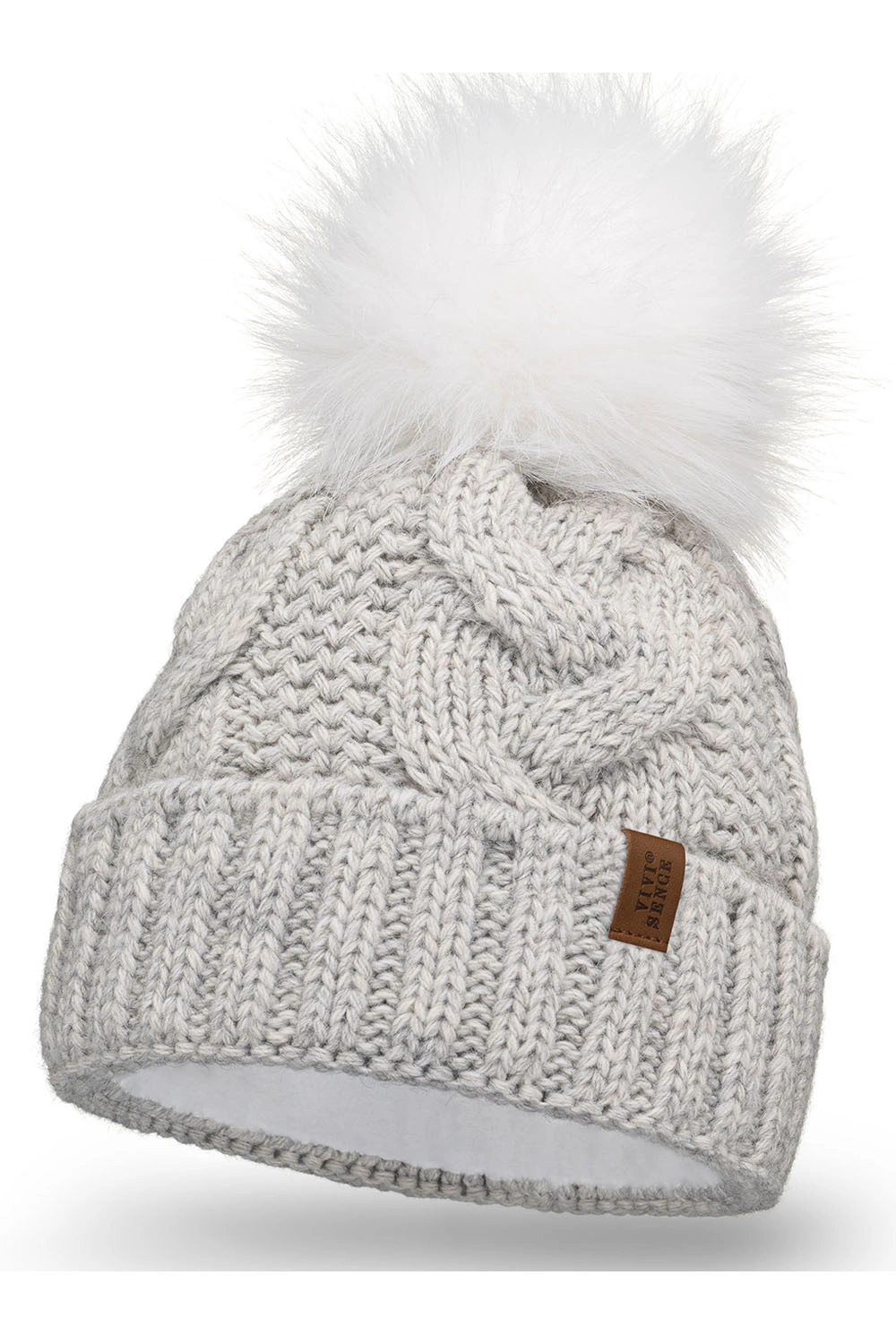 VIVISENCE Wintermütze mit Bommel Damen Warmes Ideal Für Kalte Wintertage 7014, beige Melange