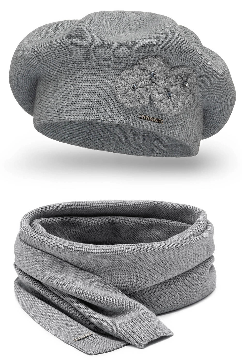 Eleganter Set für Damen: Baskenmütze und Schal.