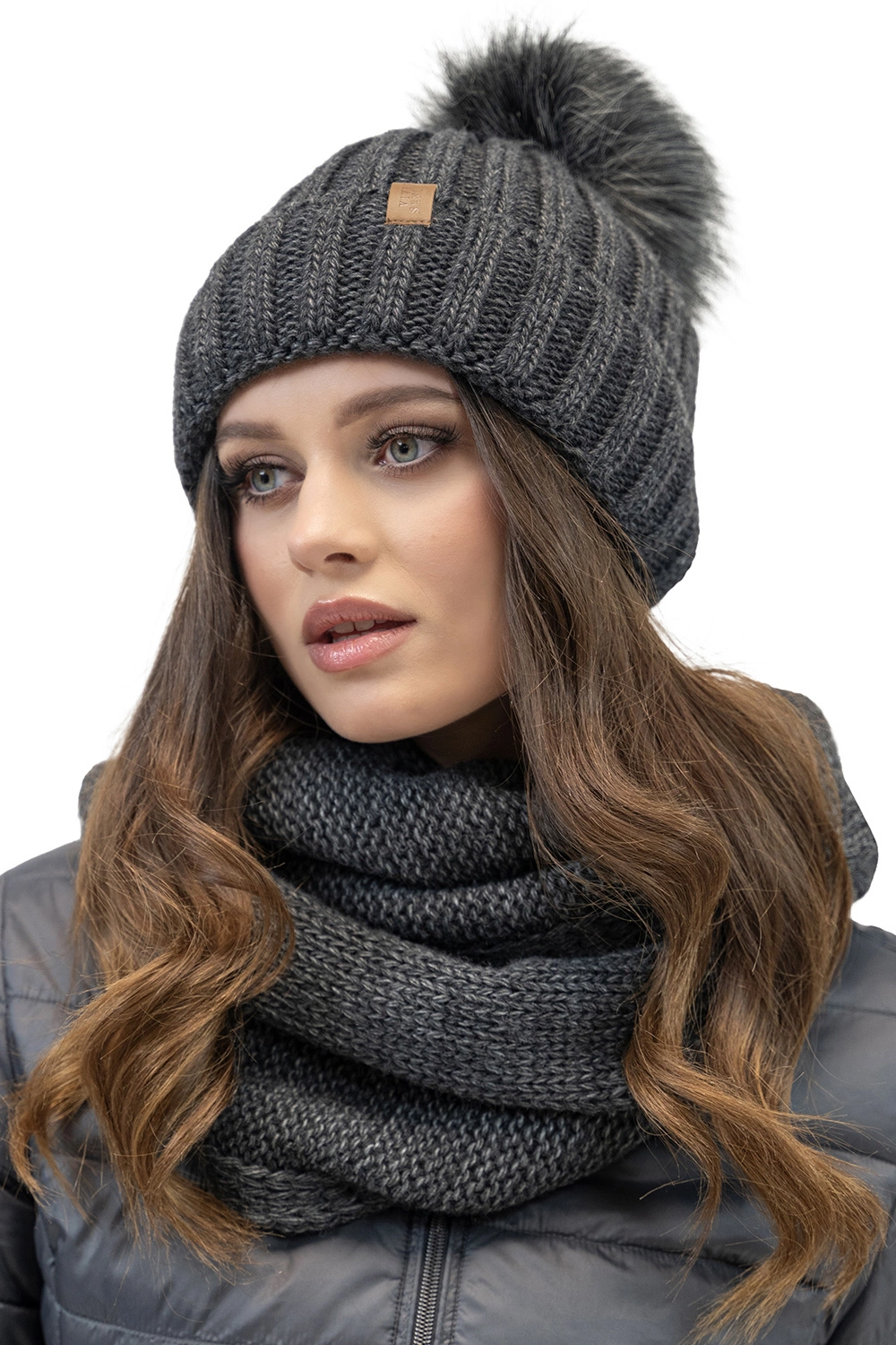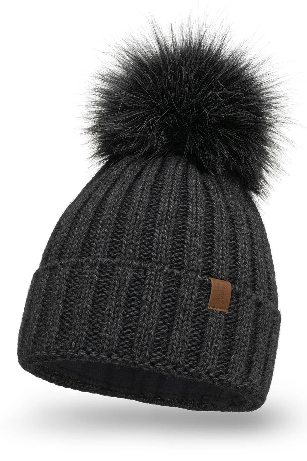 Vivisence Damen Bommelmütze Winter Fleecefutter Bommel Perfekte Passform 70100, graphit