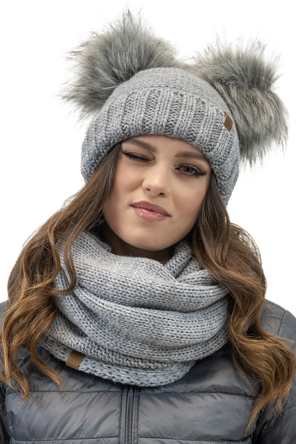 Vivisence Damen Bommelmütze Winter Zwei Bommel Wärmendem Garn Antistatischer 70106, hellgrau