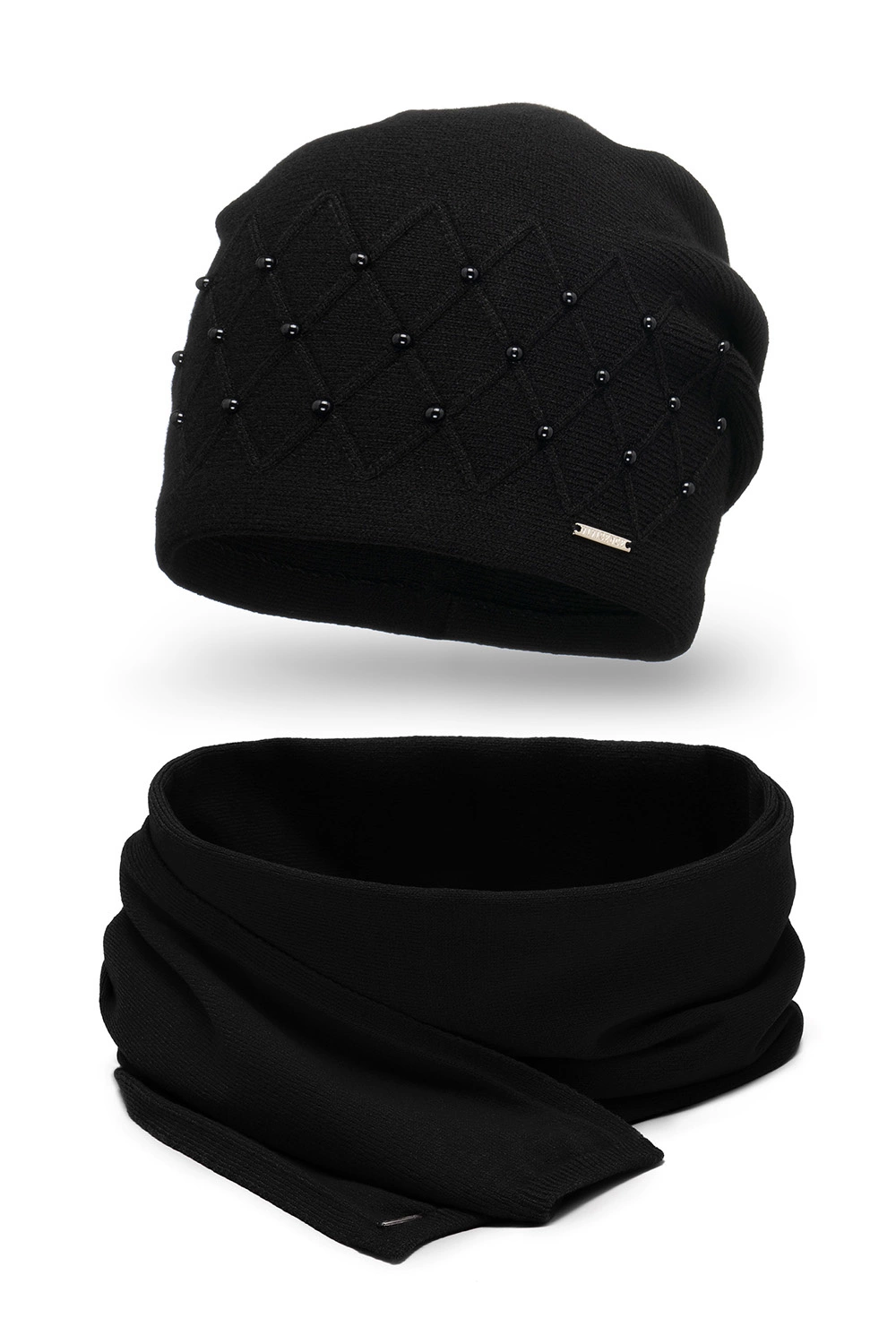 Vivisence WinterSet Für Damen Mit Mütze Und Schal Aus Warmem Garn Mit Wollzusatz Perfekt Für Kalte Wintertage Mit Dekorativen Perlen,