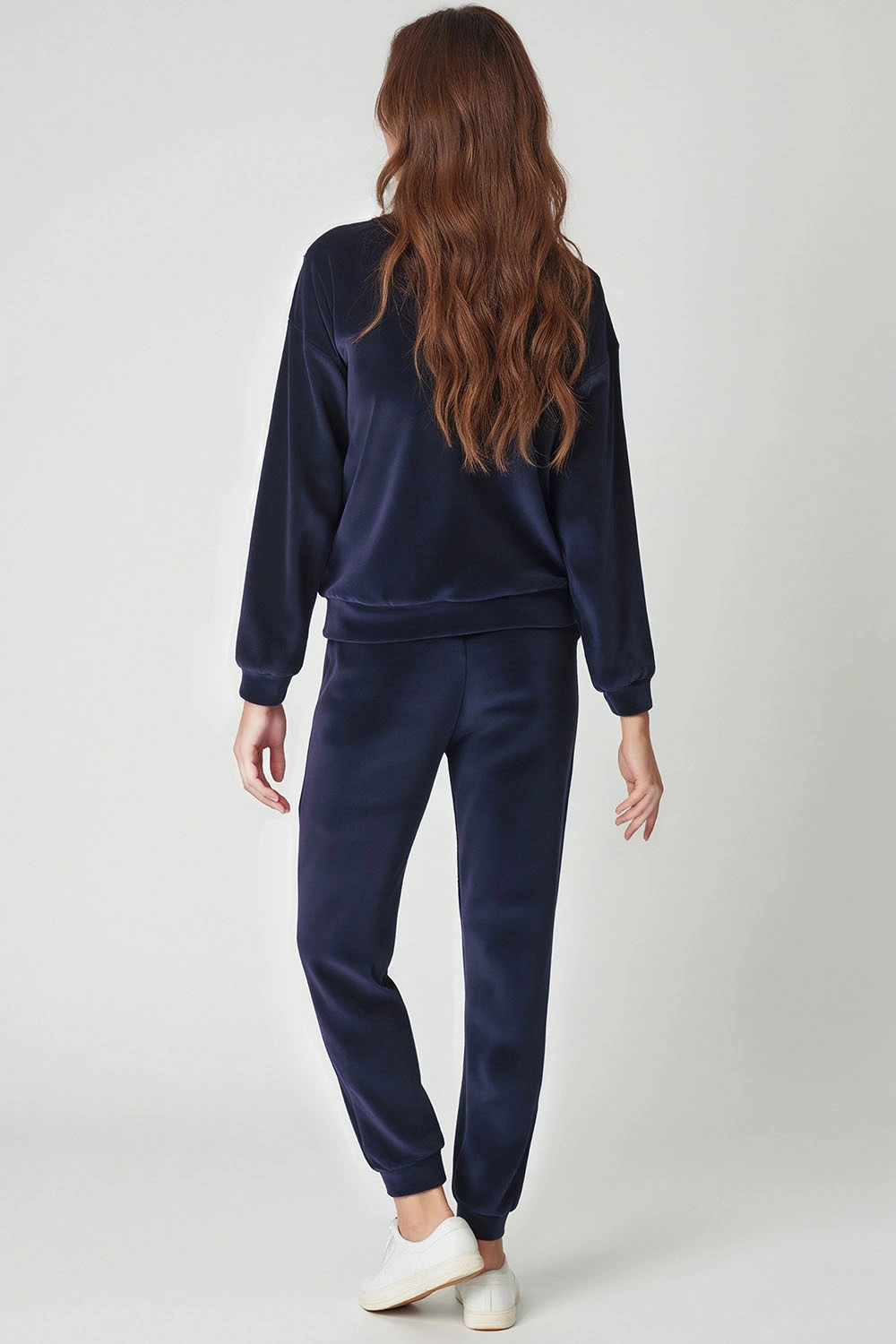 - [Hausanzug Damen]: Klassisches Set bestehend aus lockerem Sweatshirt und passender Hose – ideal für entspannte Stunden zu Hause oder als sportlicher Alltagslook.
