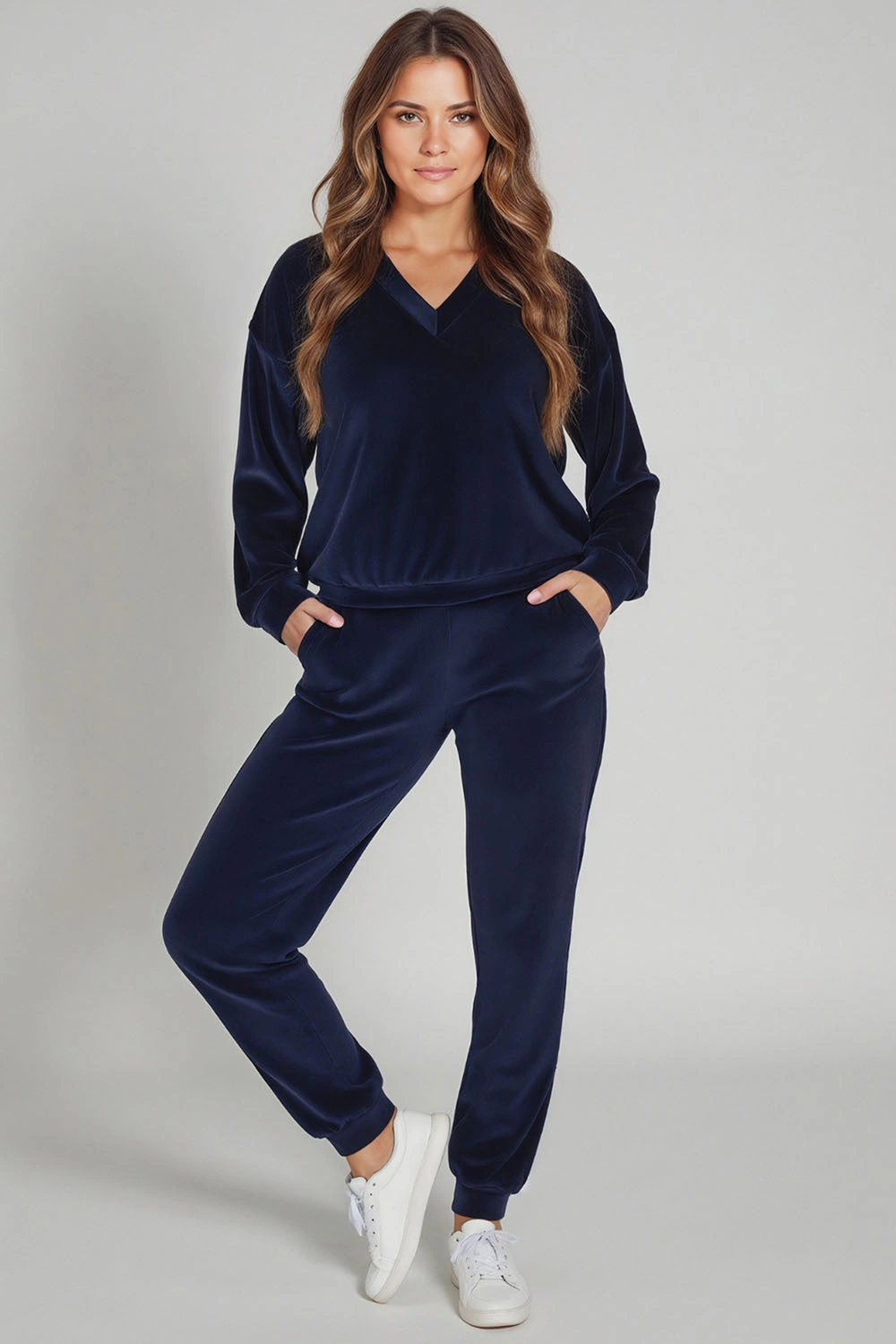 - [V Ausschnitt Oberteil]: Das Oberteil hat einen femininen V-Ausschnitt und lange Ärmel – bequem zu tragen und perfekt kombinierbar mit anderen Homewear-Teilen.