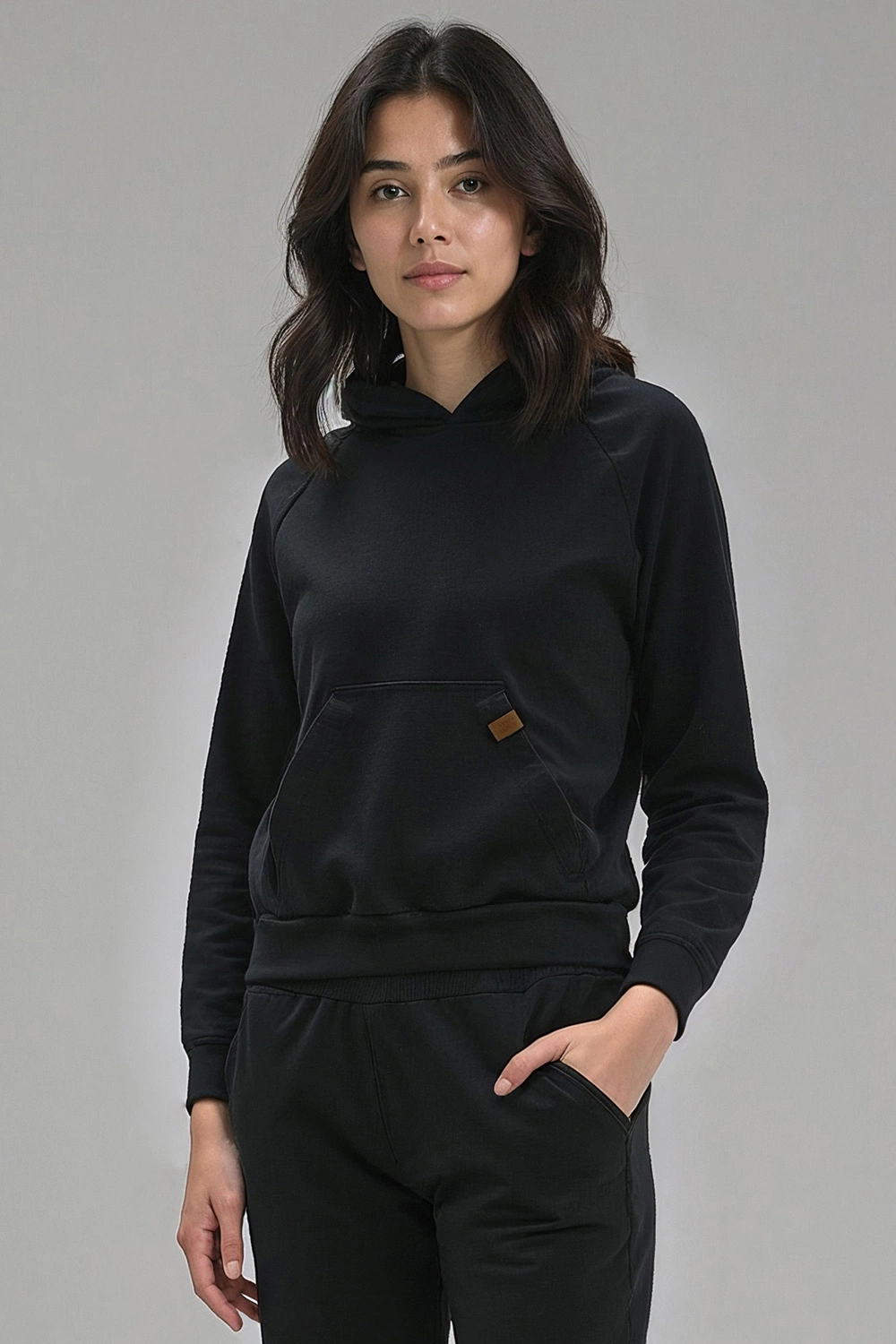 Vivisence Sweatshirt Baumwolle Lockerer Schnitt mit Kapuze Komfort Für Freizeit 9003, schwarz