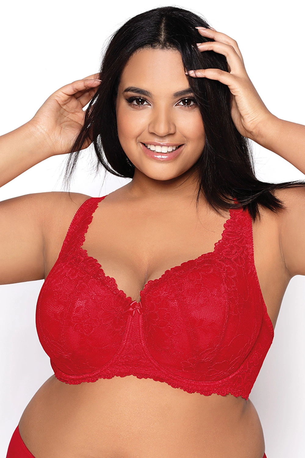 Weiblicher BH mit versteiften Schalen.- Cups und Steg aus zarter Spitze mit Blumenmuster- in der Mitte mit einem kleinen Schleifchen verziert- regulierbare, nicht abnehmbare Träger mit Spitzenverzierung- die Bügel formen und unterstützen die Brüste- Hinterteil aus subtilem Netzstoff (Farben: weiß, schwarz)- Hinterteil aus Spitze (andere Farben)- mit vertikalen Seitenstäbchen (Farben: weiß, schwarz, rot)- ohne vertikale Seitenstäbchen (andere Farben)Zum Set empfehlen wir Slip und Shorts Carmela.Materialzusammensetzung:Weiß, schwarz, rot:66% Polyamid, 18% Baumwolle, 10% Polyurethan, 6% Elasthan.Andere Farben:44% Polyamid, 18% Polyesther, 16% Baumwolle, 16% Polyurethan, 6% Elasthan.Sinnliches Vergnügen, verführerische Eleganz. Die Cups modellieren einen perfekten Busen und verwöhnen mit einem herrlichen Tragegefühl. Der traumhafte Büstenhalter aus der MAT- Kollektion mit versteiften Cups. Die Cups und die Brücke sind aus einer wunderschönen Spitze mit Blumenmuster gefertigt. Der Rückenteil aus feinem Netzstoff. Zwischen den Cups ein Satinschleifchen. Dieses Modell besitzt vertikale Stäbchen. Die Träger wurden mit Spitze verlängert, regulierbar und nicht abnehmbar. Zum Set empfehlen wir Ihnen auch Slip und String Carmela von MAT.