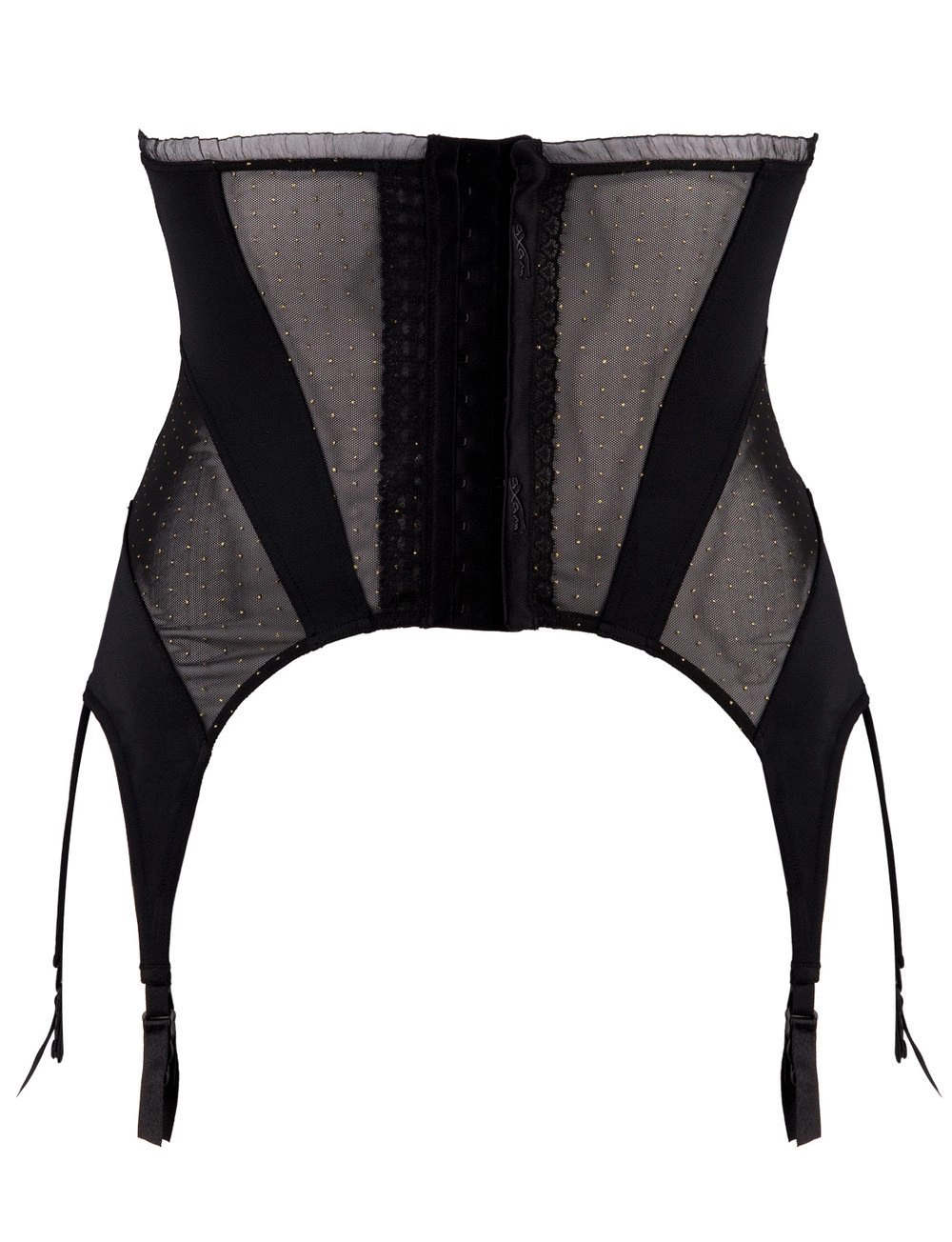 Der figurformende Strumpfhalter Satellite eist ein toller Zusatz zum Büstenhalter Satellite. Durchsichtiges Tüllstoff und samtes Schwarz verführen ideal . Am Hinterteil sexy Ausschnitt. Das Modell besitzt nichtregulierbare Strapsen und vorne zweistufiger Ösenverschluss. Zum Set empfehlen wir Ihnen auch den String und den Büstenhalter Satellite.