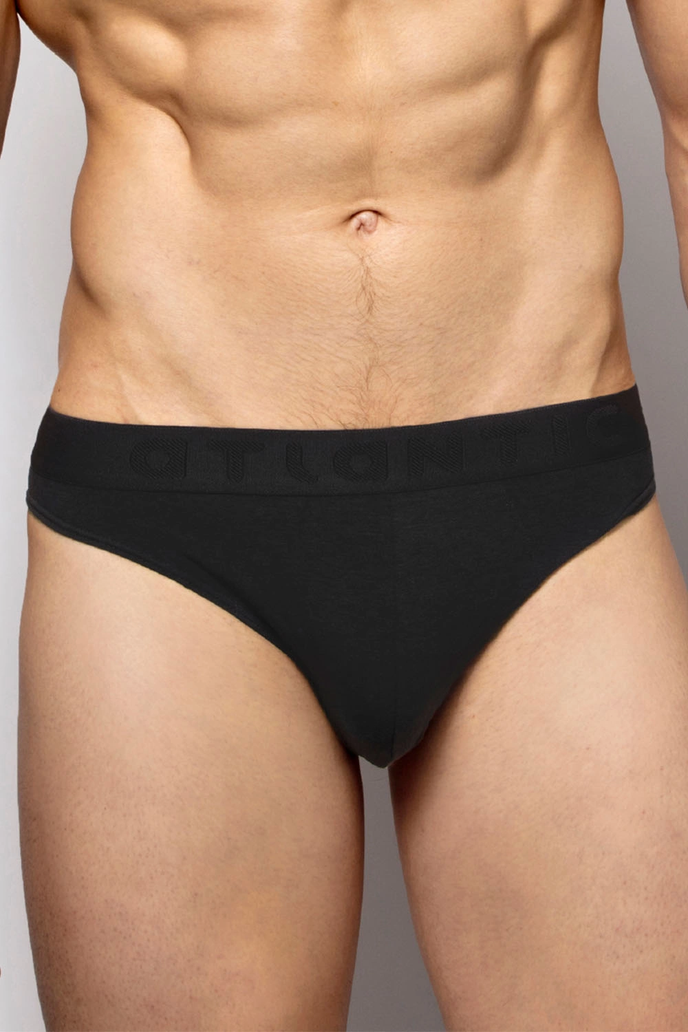 Slip im sportlichen Stil. Modell mit tief ausgeschnittenen Seiten und niedrigem Bund. Komfortables Gummiband in der Taille. Unterwäsche aus glattem, anschmiegsamem Bambus, der eine feuchtigkeitsabsorbierende und thermoregulierende Eigenschaften hat.