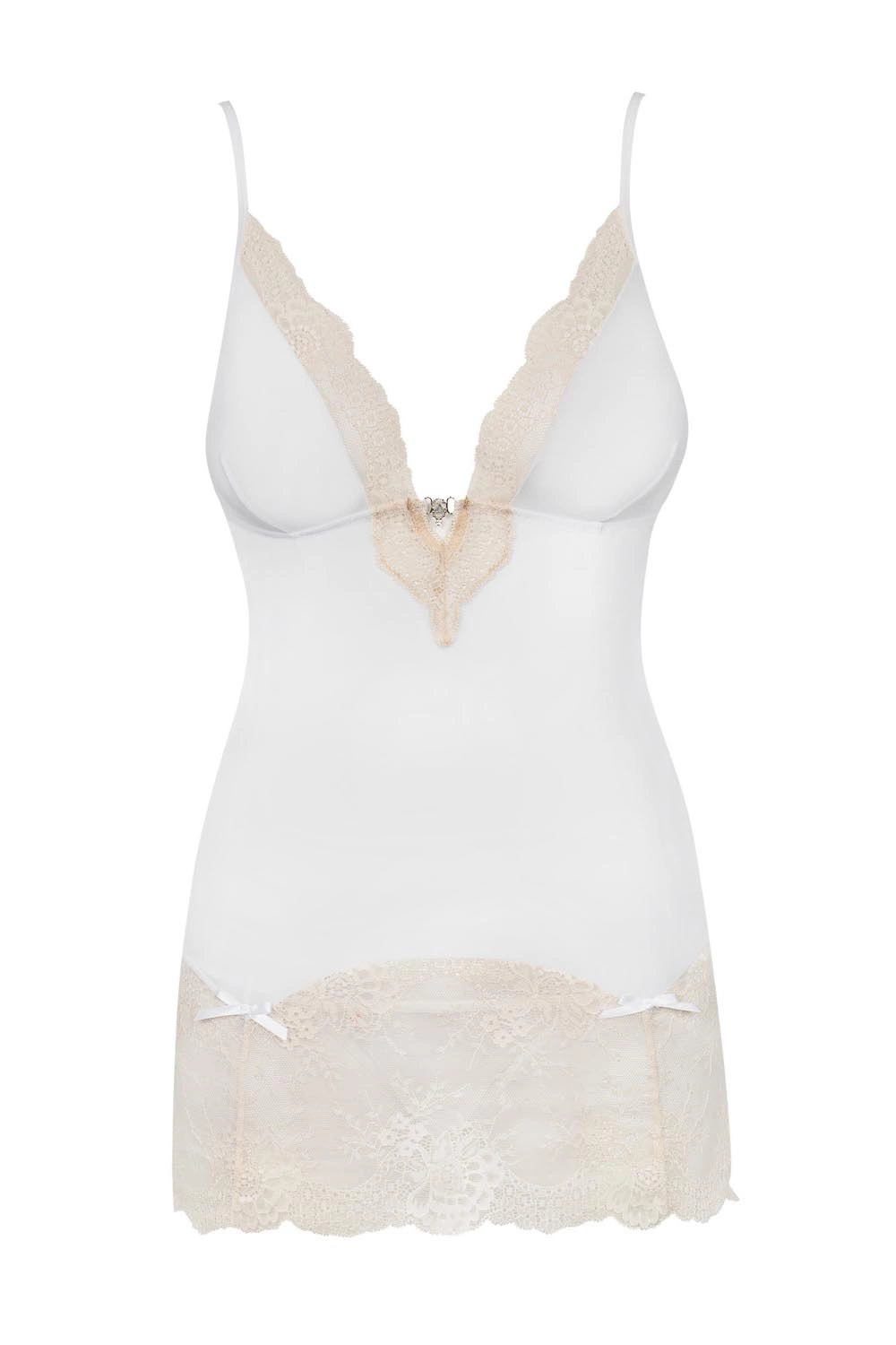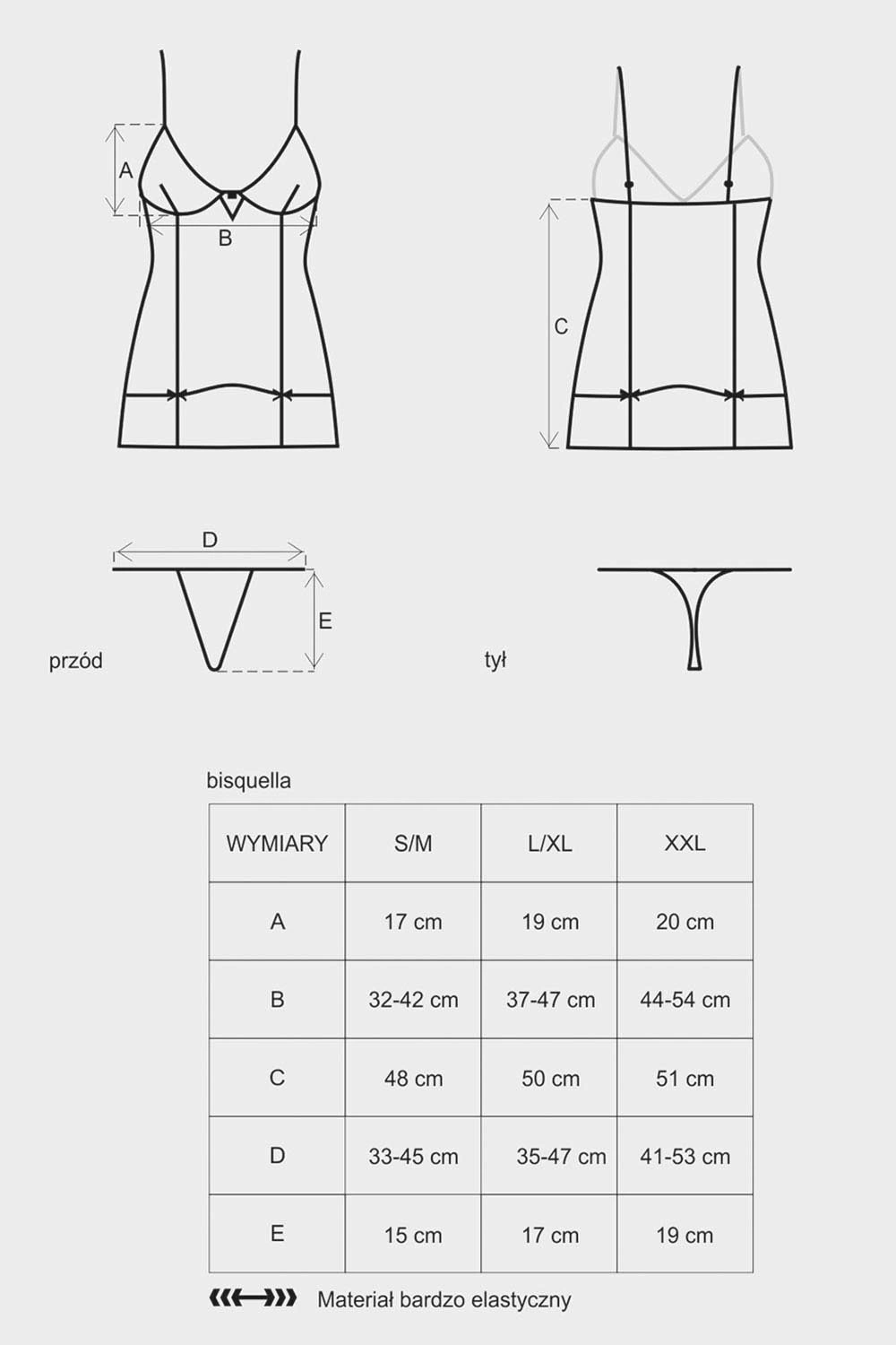 Dank dem Nachthemd Bisquella von Obsessive werden Sie verführerische Königin im Schlafzimmer! Die fantastische, feine Spitze und anziehende Details sorgen für unvergessliche Zeit zu Zweit. Die Soft-Cups zaubern wunderschöne Brust, die glänzenden Zirkone verzieren Dekolletee (nickelfrei). Das Modell besitzt regulierbare Träger, die für perfekte Anpassung sorgen. Die vertikalen Nähte machen optisch die Taille schlanker. Der untere Teil des Nachthemdes wurde mit reichverzierter Spitze in Beige versehen. Der String aus feinem Netzstoff im Set. Der Stoff ist weich und elastisch.