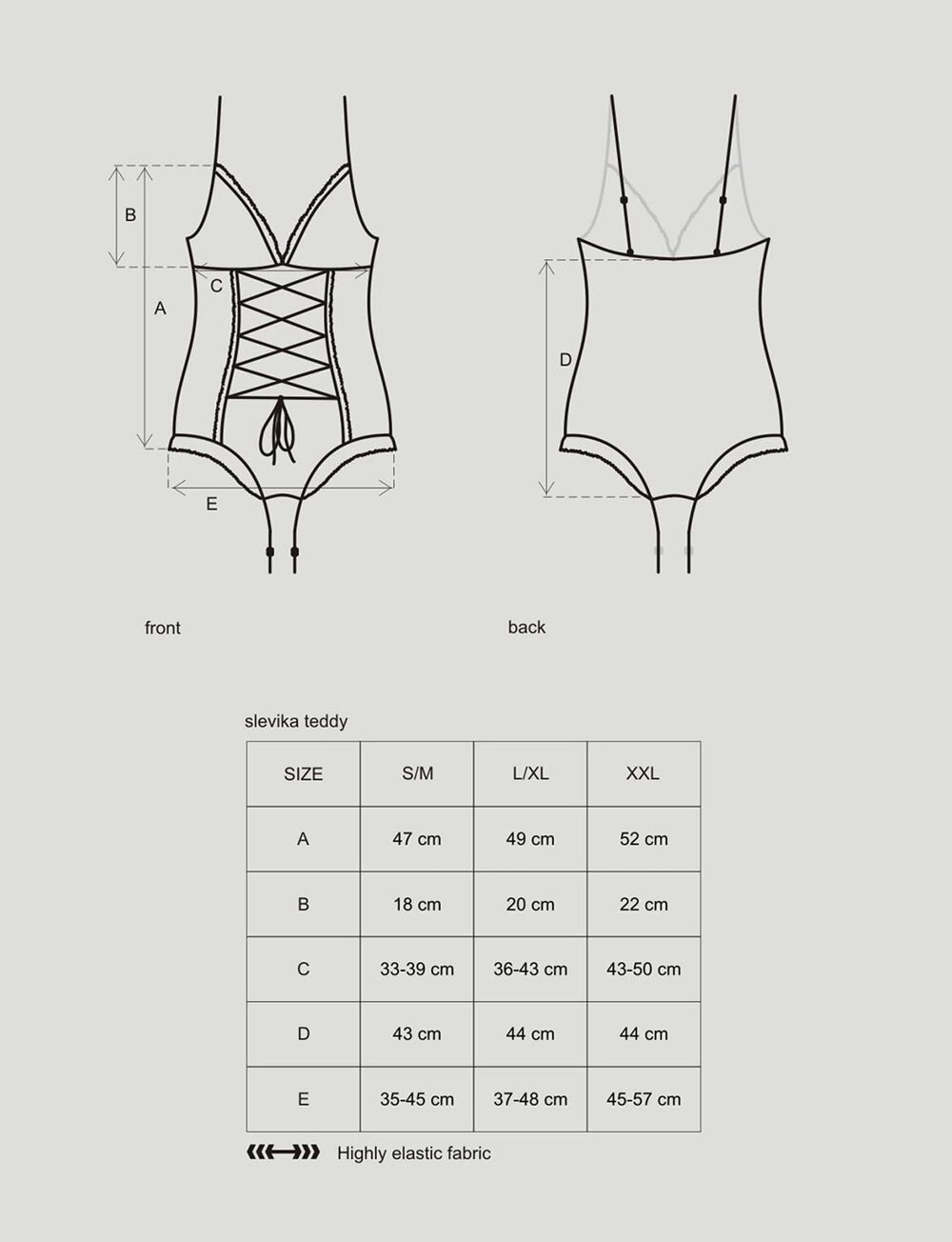Man sagt, dass die Träume in Erfüllung gehen. Es ist richtig. Der Body Slevika von Obsessive ist das beste Beispiel dafür. Suchen Sie etwas Neues? Klar! Fühlen Sie den weichen Stoff an, sehen Sie die traumhafte Schnürrung und pikanten Schnitt im Schritt. Überraschen Sie Ihren Mann! Der Body aus Spitze mit Blumenmotiv in schwarzer Farbe. Reine Weiblichkeit! Die nicht versteiften Cups heben Ihren Brust ideal hervor. Die regulierbaren Träger sorgen für perfekte Anpassung. Vorne kokette Schnurrung. Pikanter, freier Schnitt. Elastischer und weicher Stoff. Materialzusammensetzung: 82% Polyamid, 18% Elasthan.
